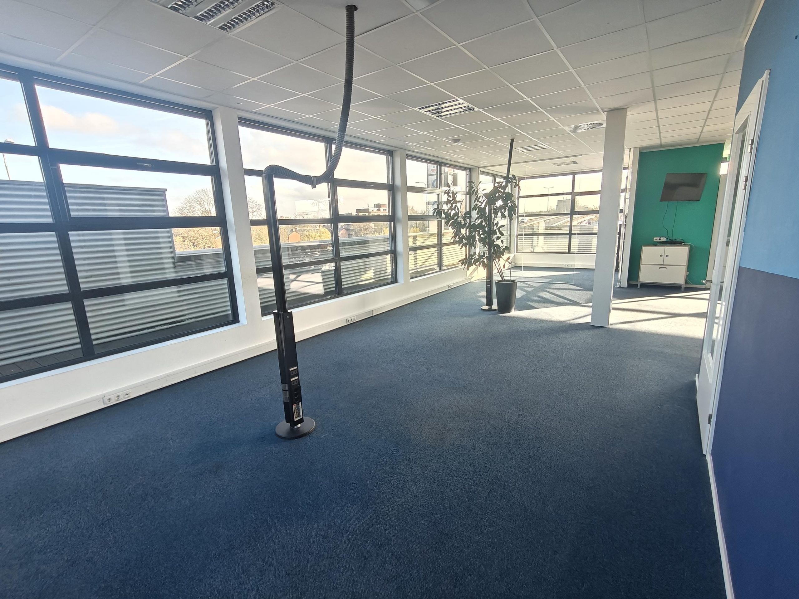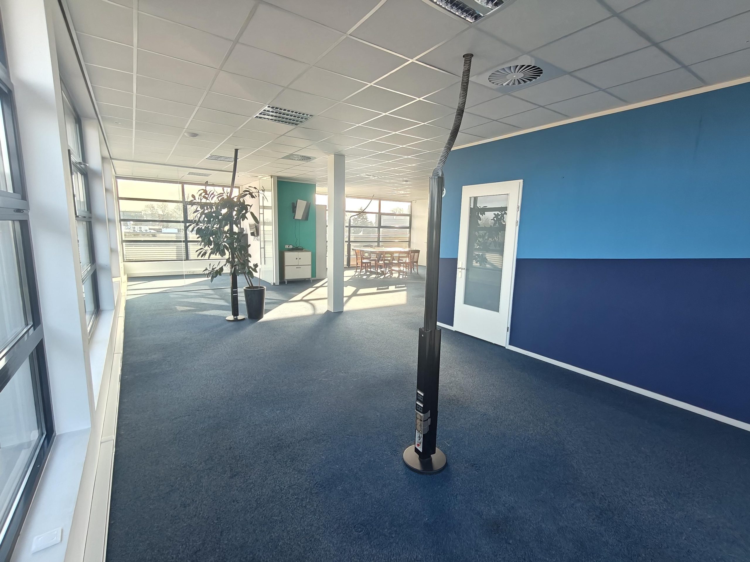 Systeemplafond met inbouwarmaturen, vloerbedekking, klimaatbeheersing: verwarmen en koelen met ventilatie, voldoende stroompunten, kabelgoten en sanitaire voorzieningen. Glasvezel aanwezig in het object, af te sluiten door huurder.