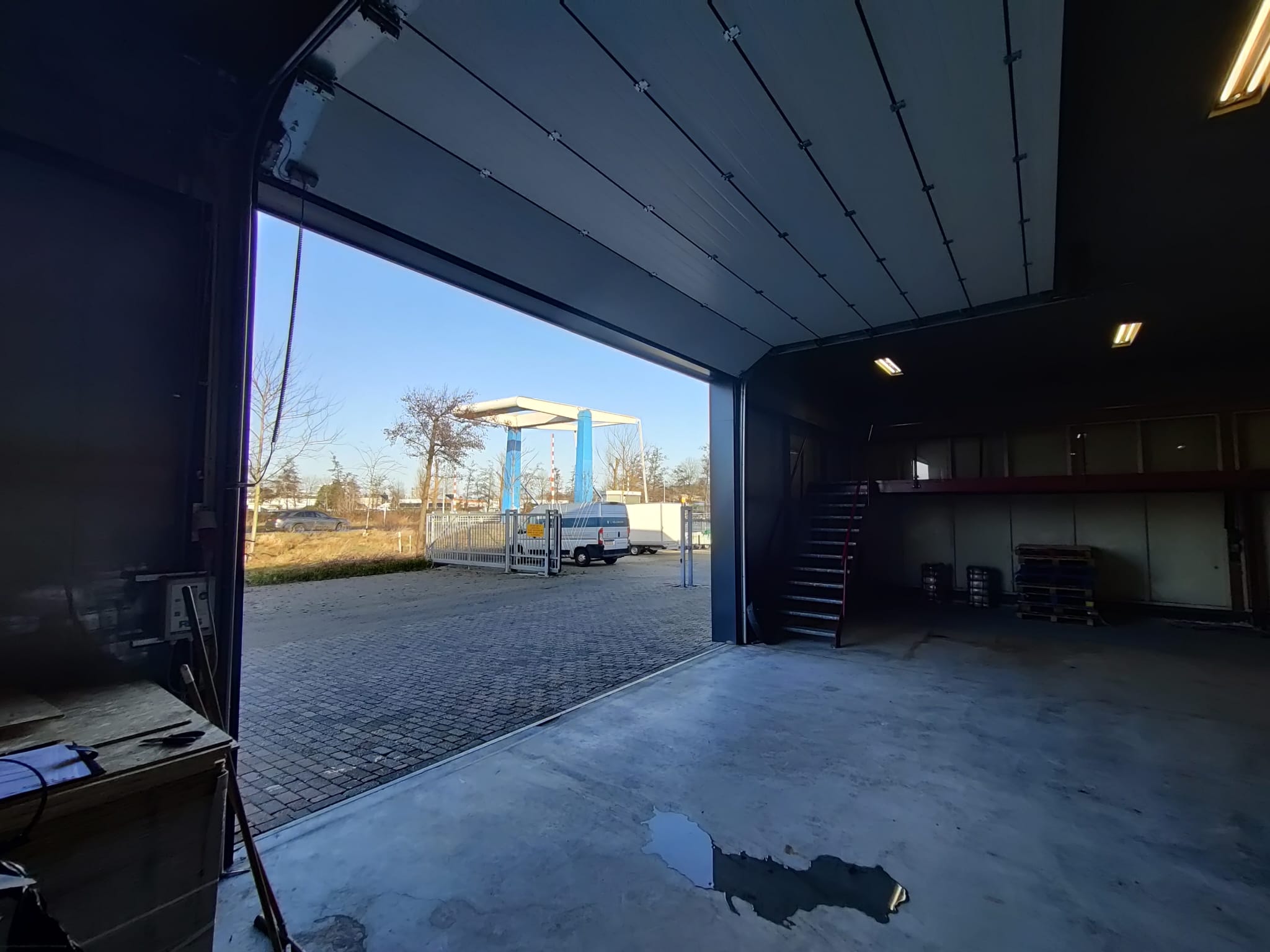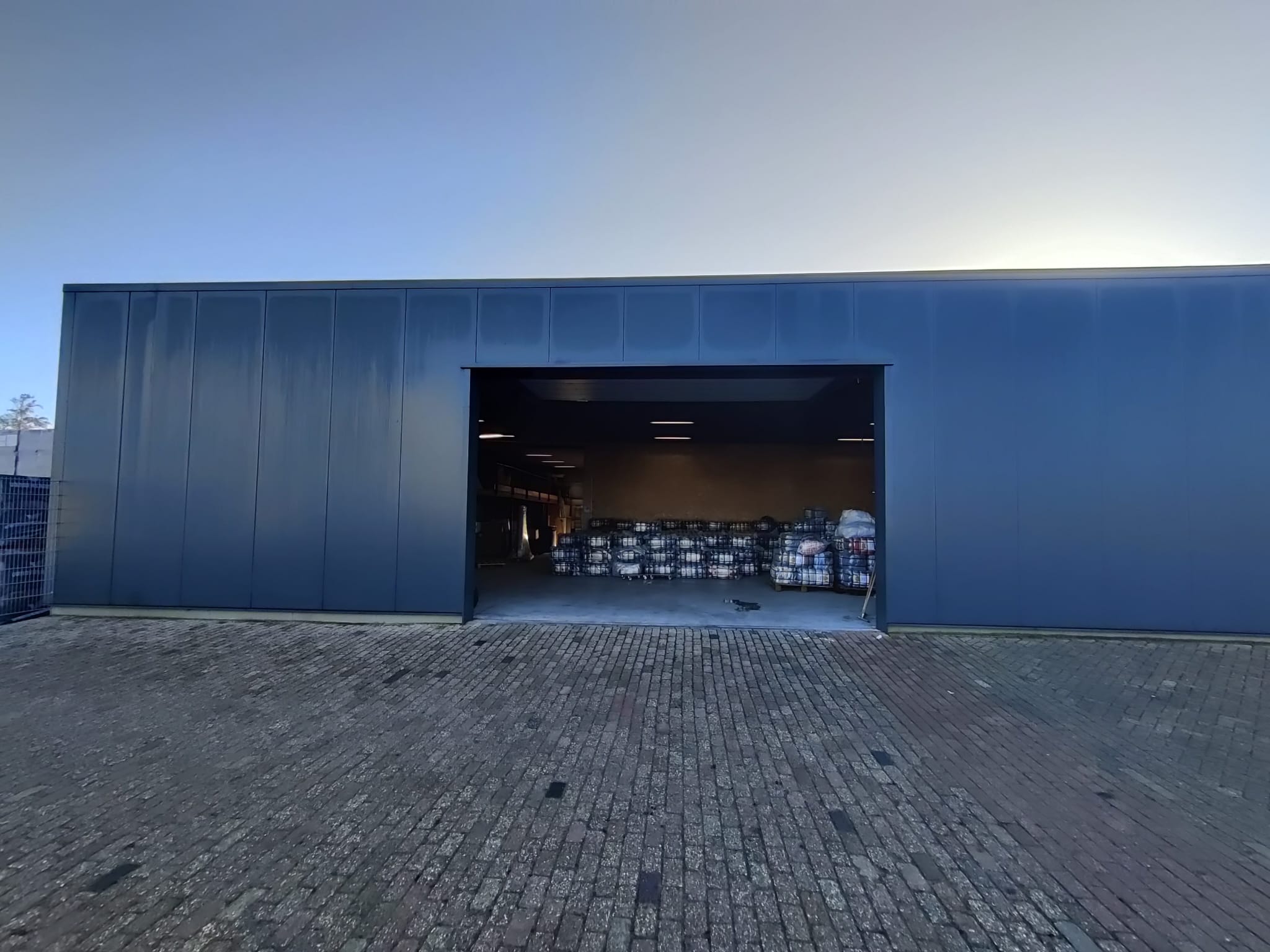 Zonnepanelen op het dak, toilet, betonvloer, overheaddeur en tussenmeters voor water en elektra.
