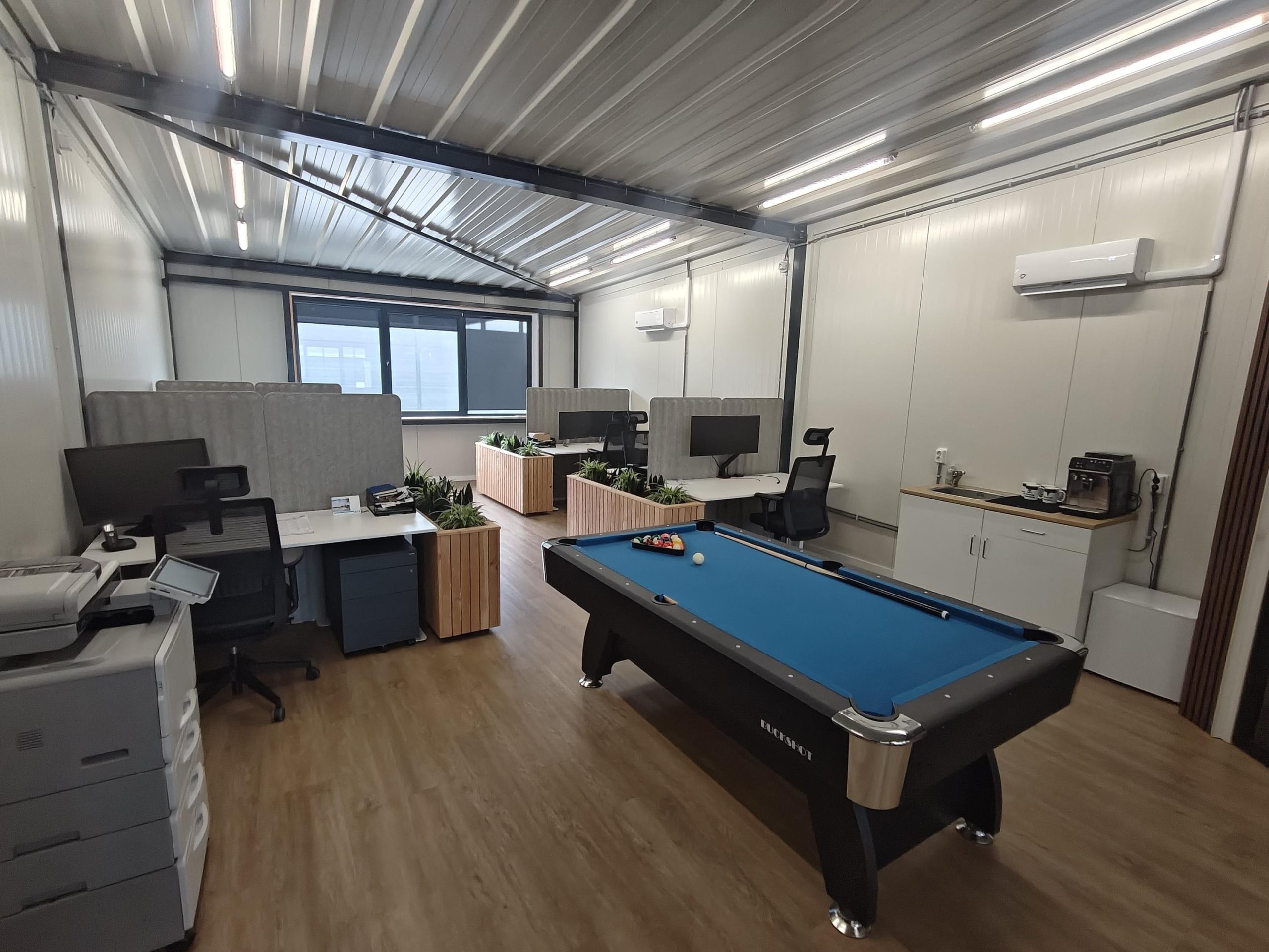 Aangeboden een in 2024 gebouwde bedrijfsunit met kantoor van in totaal ca. 158 m2. De begane grond bestaat uit een hal met toilet van ca. 27 m2 en een bedrijfsruimte van ca. 52 m2. Het kantoor op de eerste verdieping is ca. 79 m2 en bestaat uit een kantoorruimte en een spreekruimte.