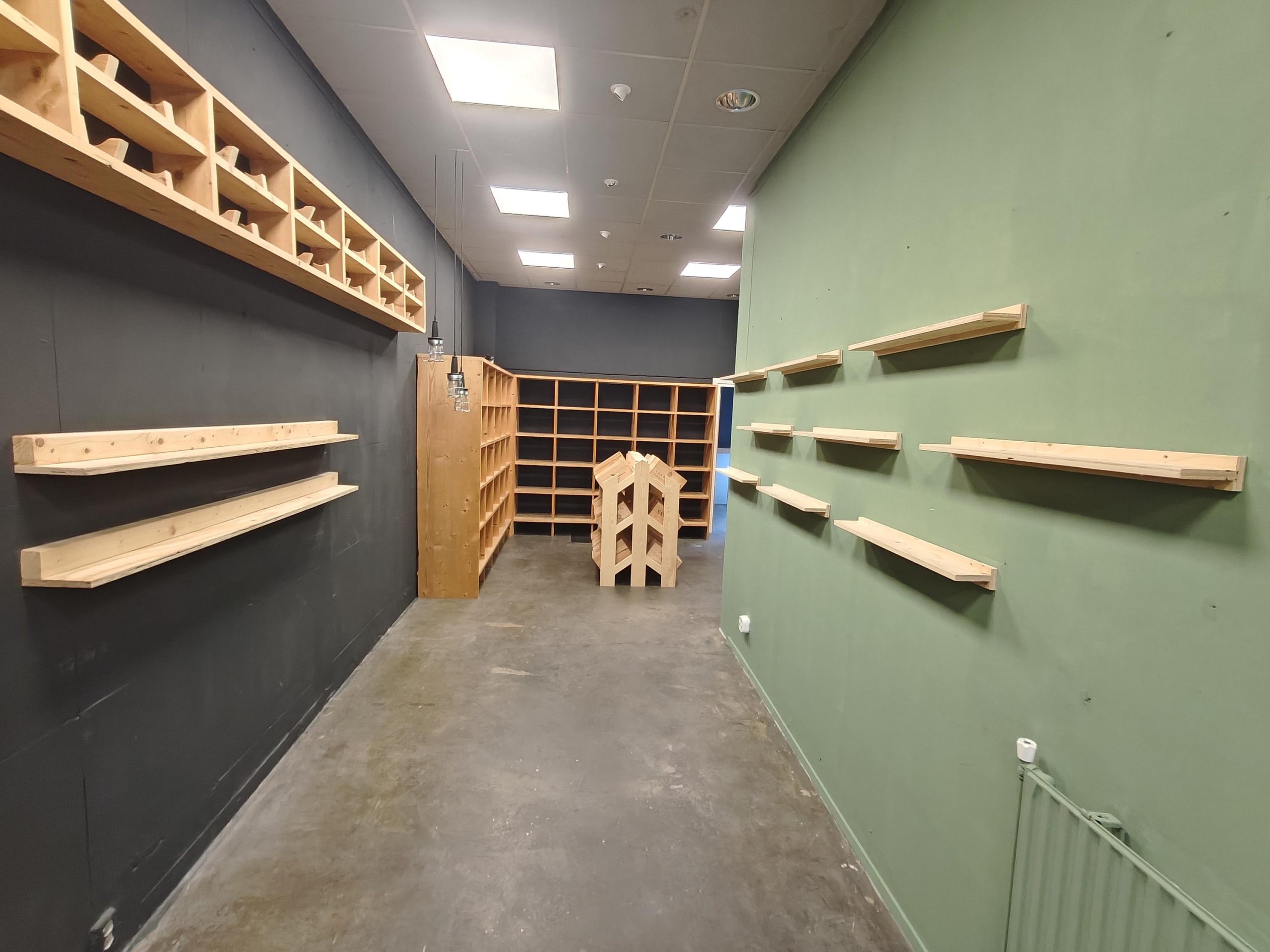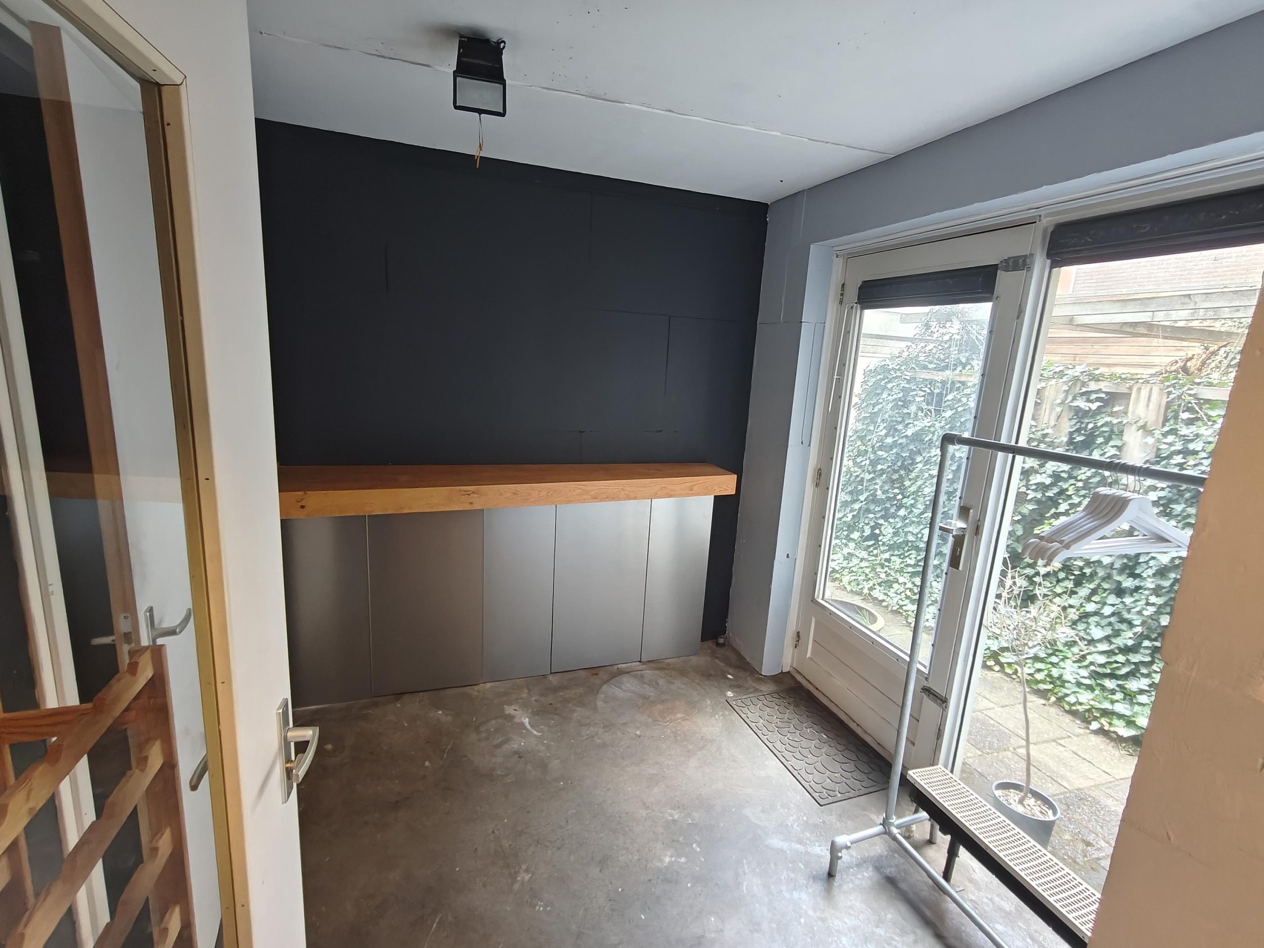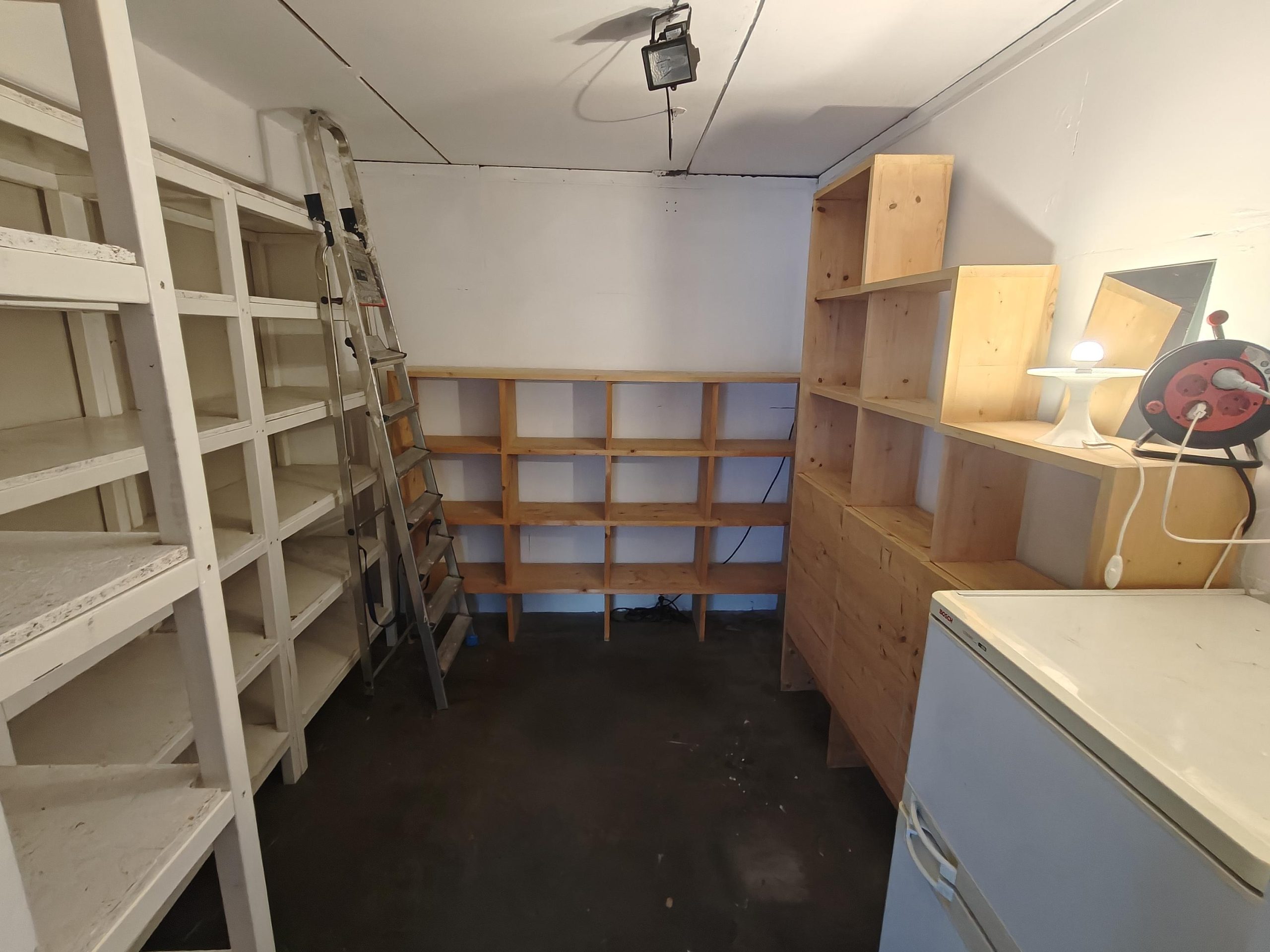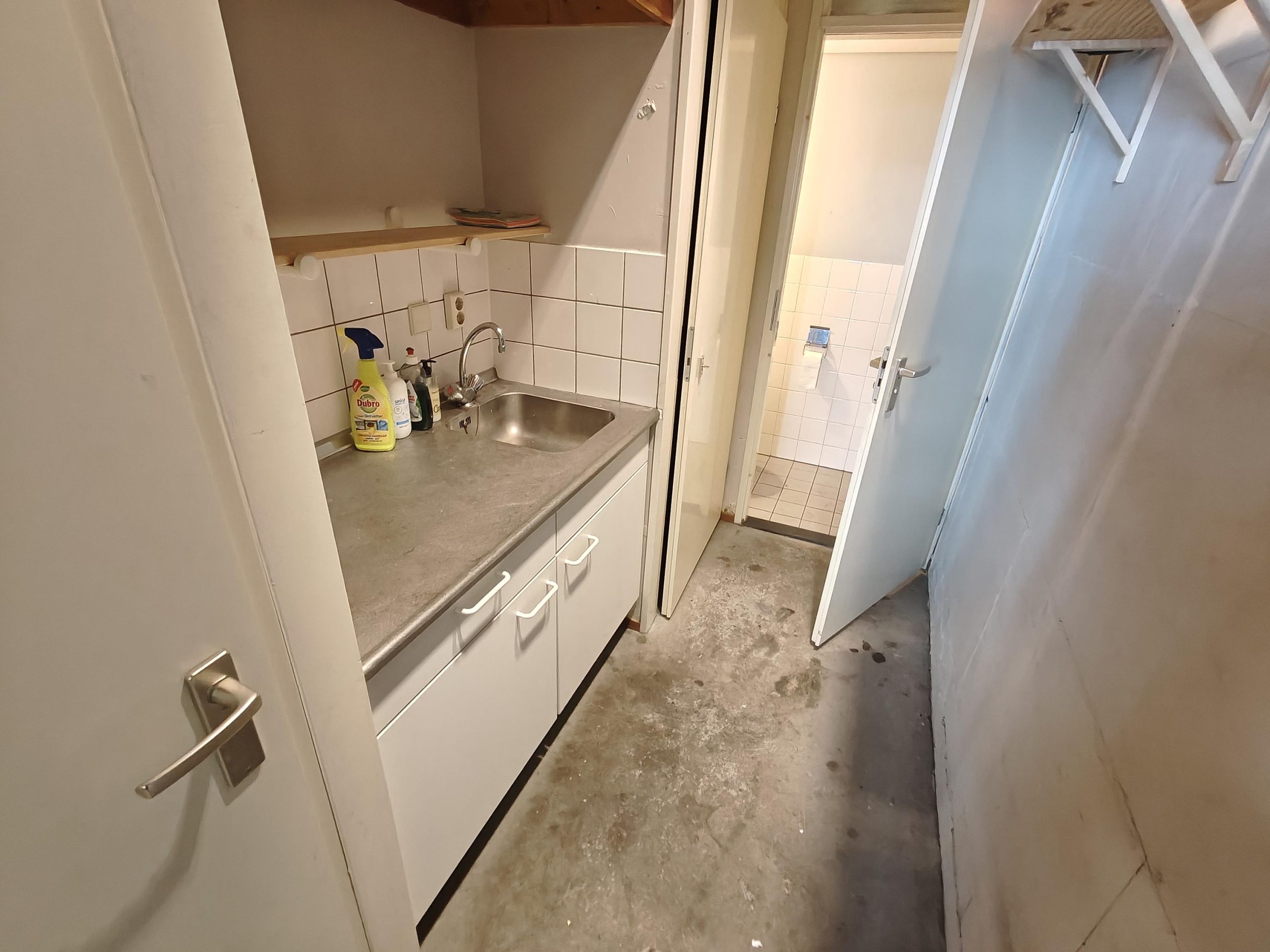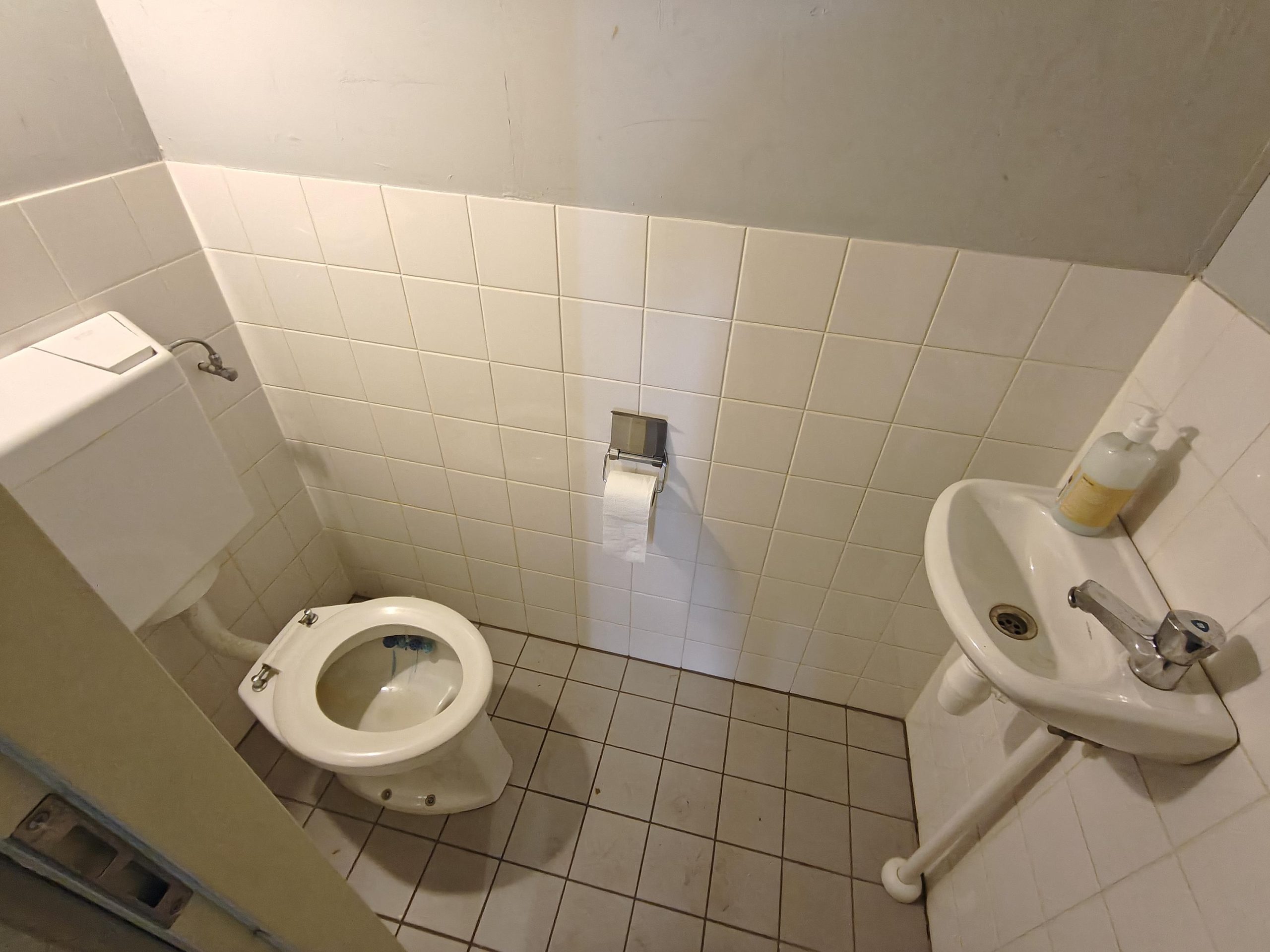 Systeemplafond met ledverlichting en spotjes, gevlinderde betonvloer, camera's, Cv-ketel met radiatoren, voldoende stroompunten, een pantry en toilet met fontein.