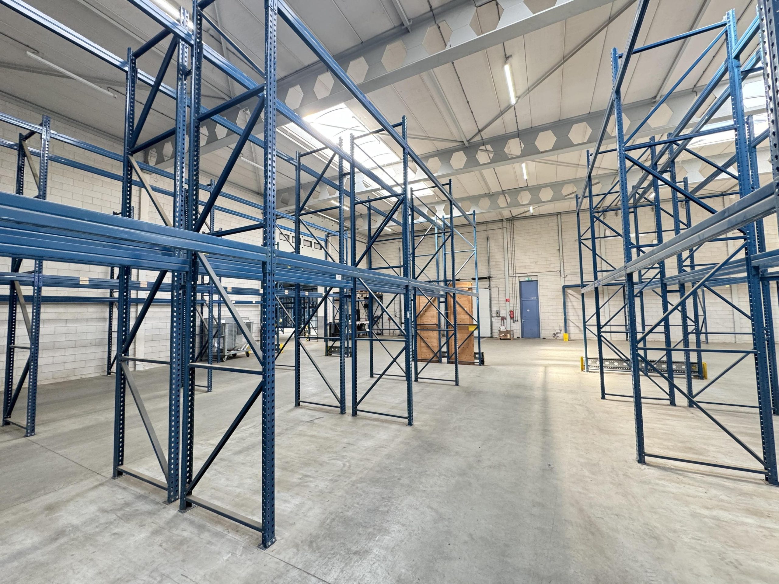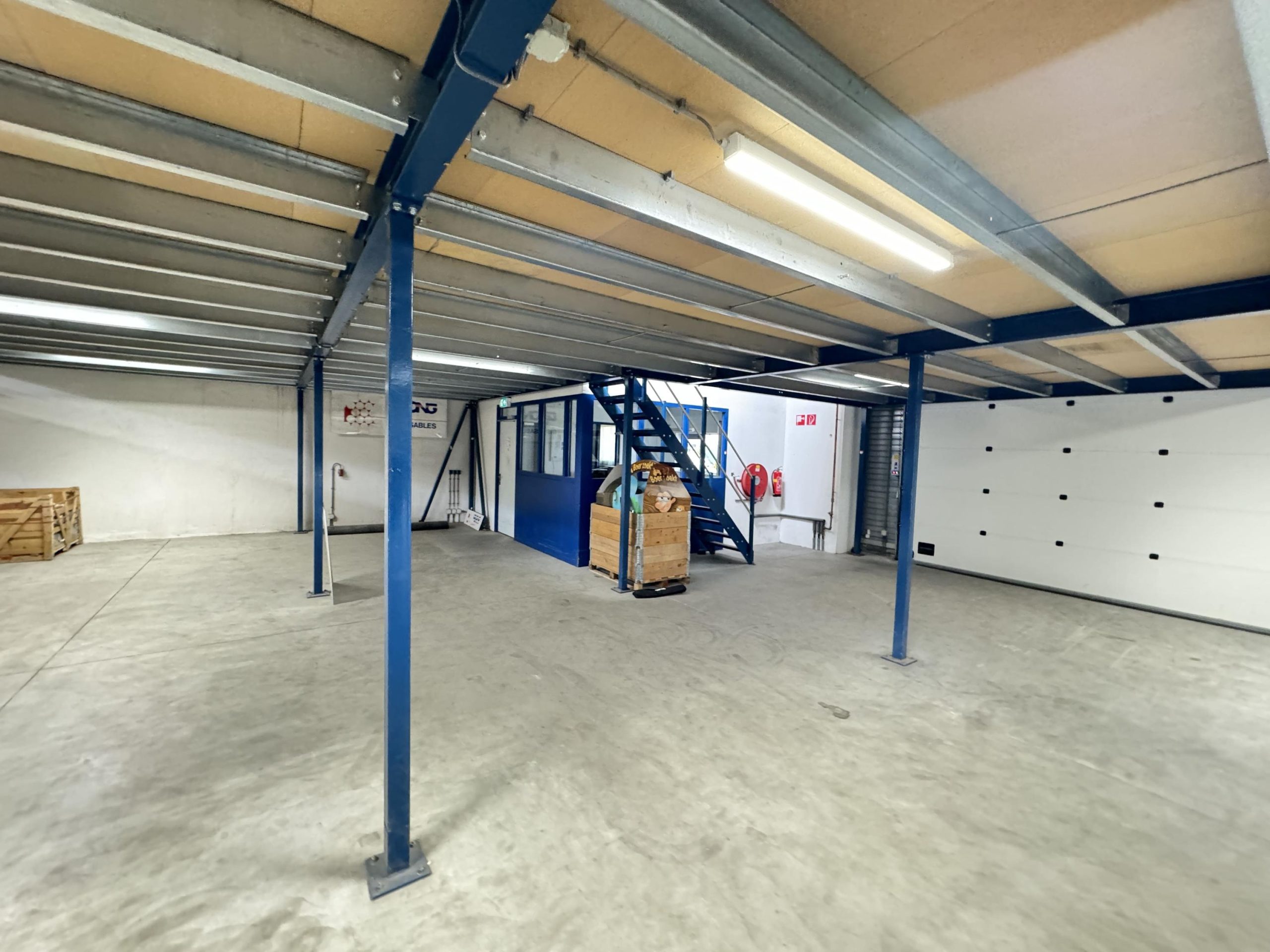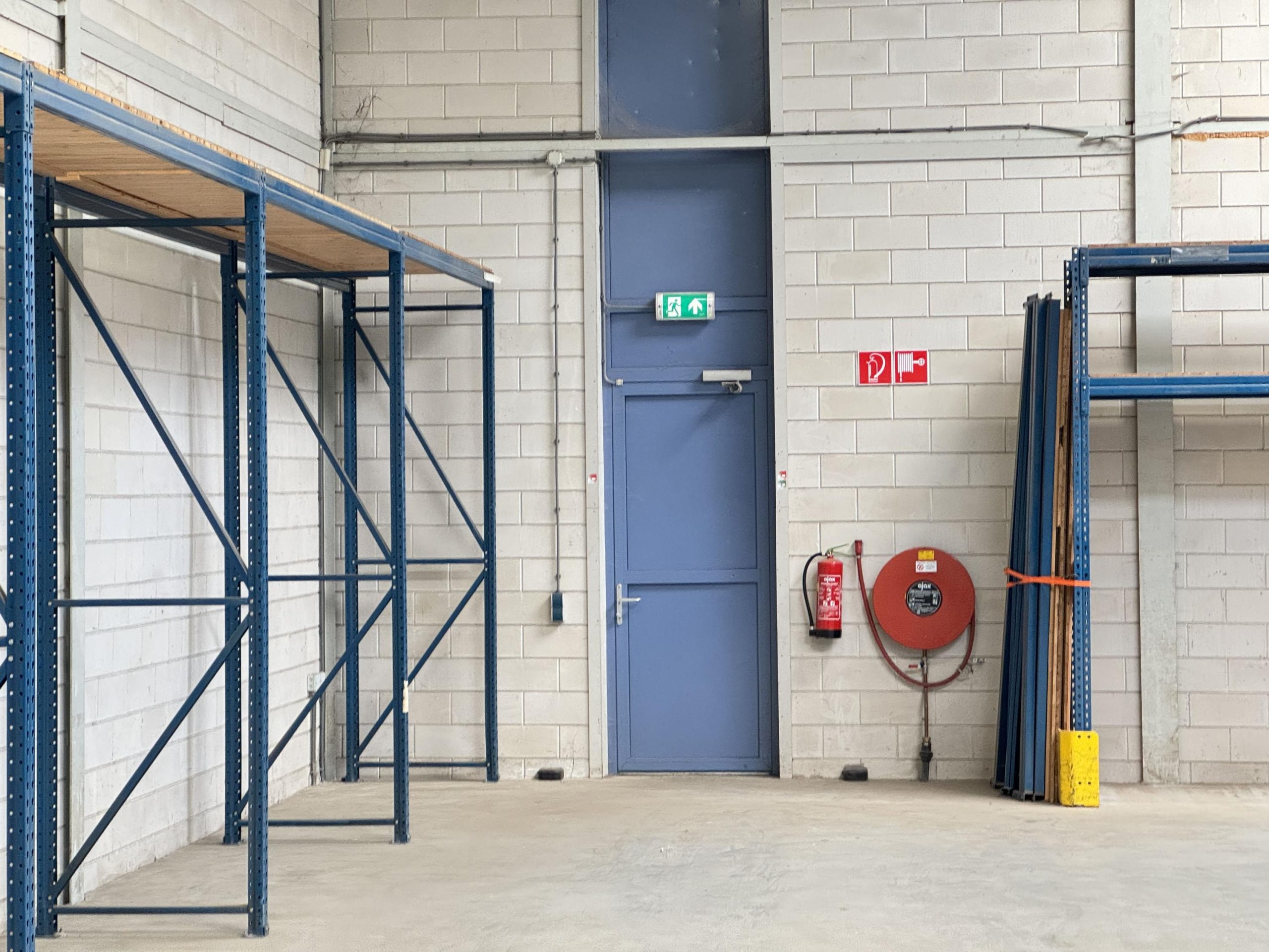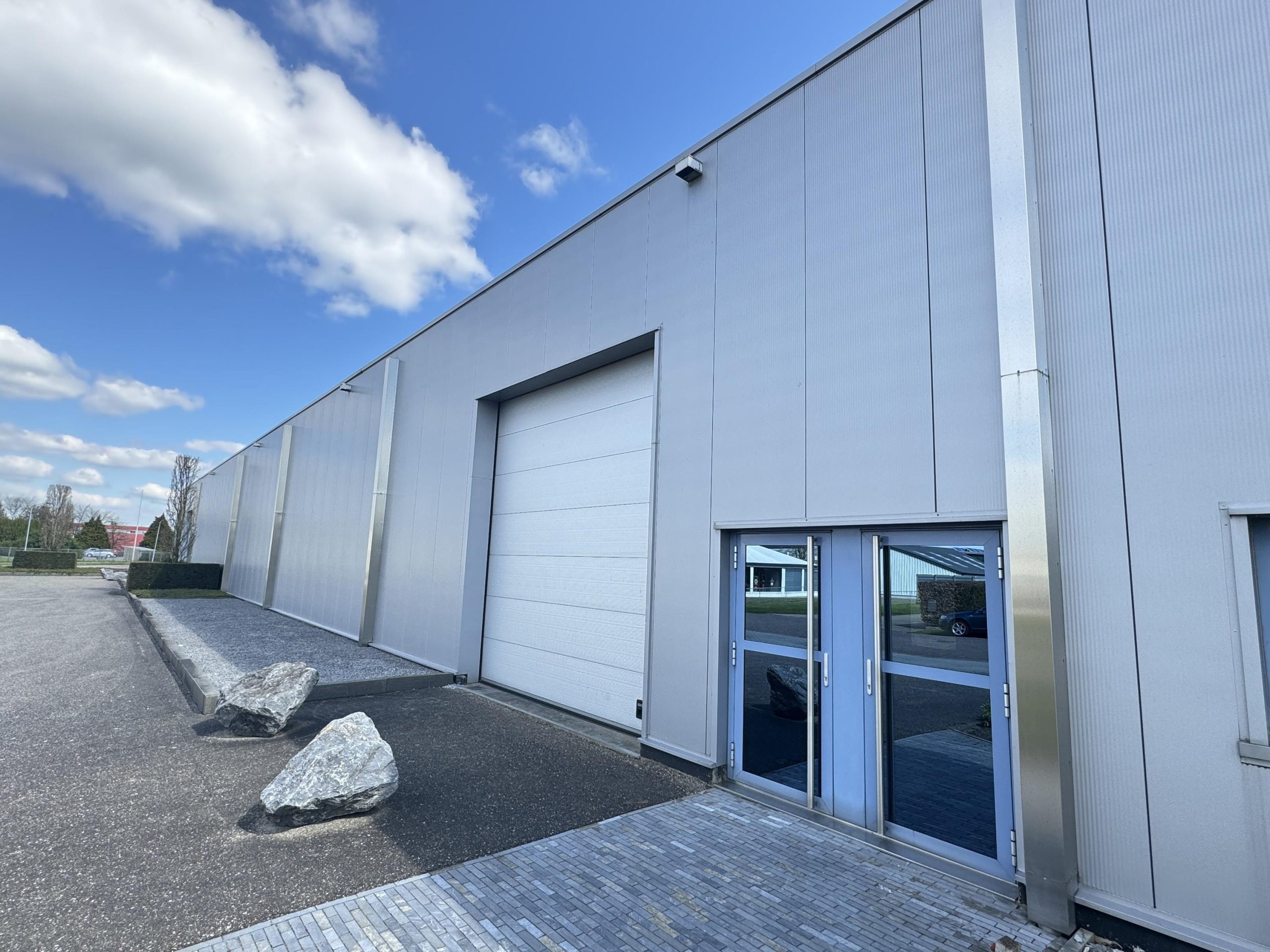 Bedrijfsruimte: Twee overheaddeuren, twee loading docks, gevlinderde betonvloer, energiezuinige lichtstraten die zijn voorzien van sensoren, krachtstroom en brandblussers.