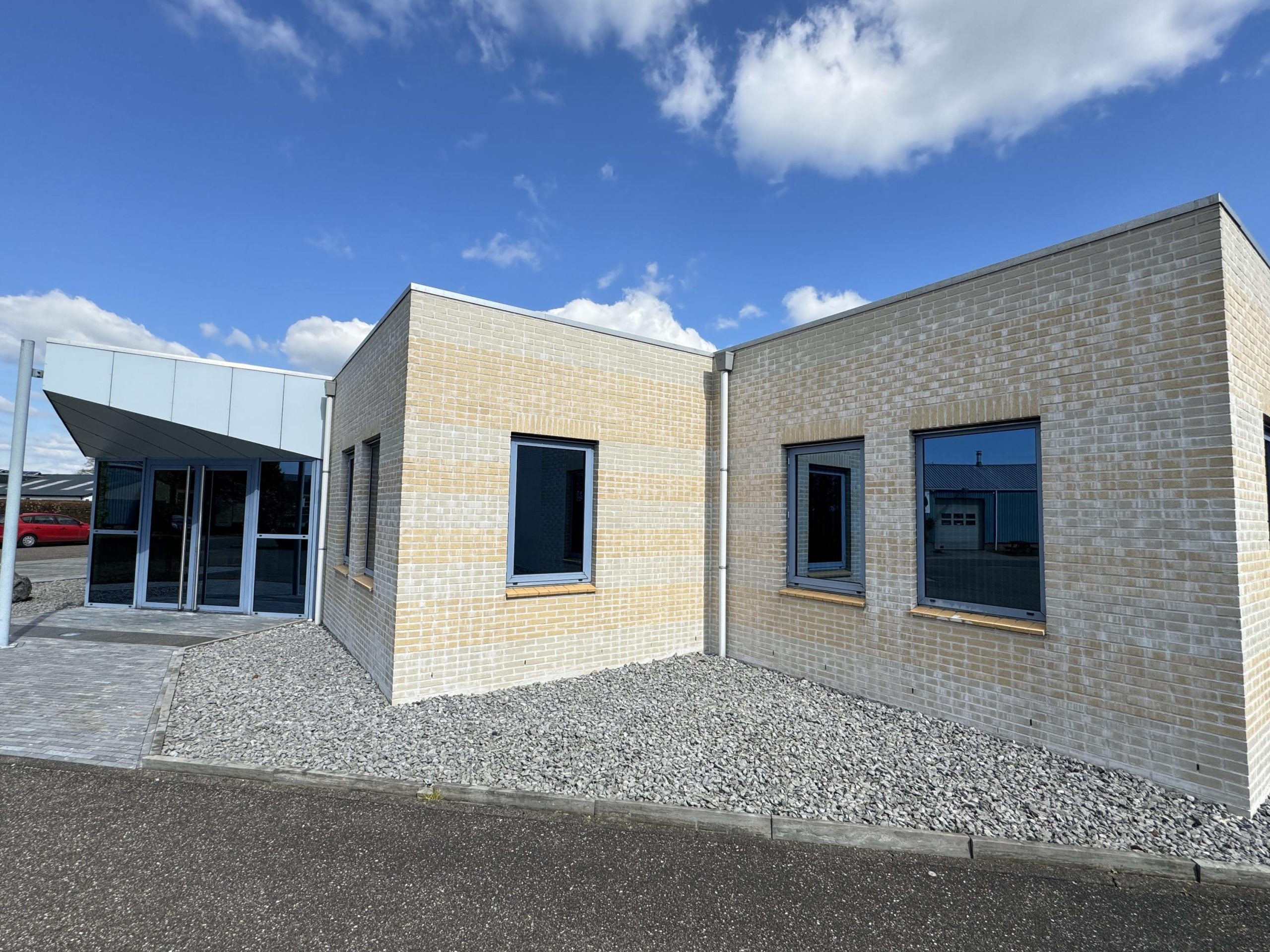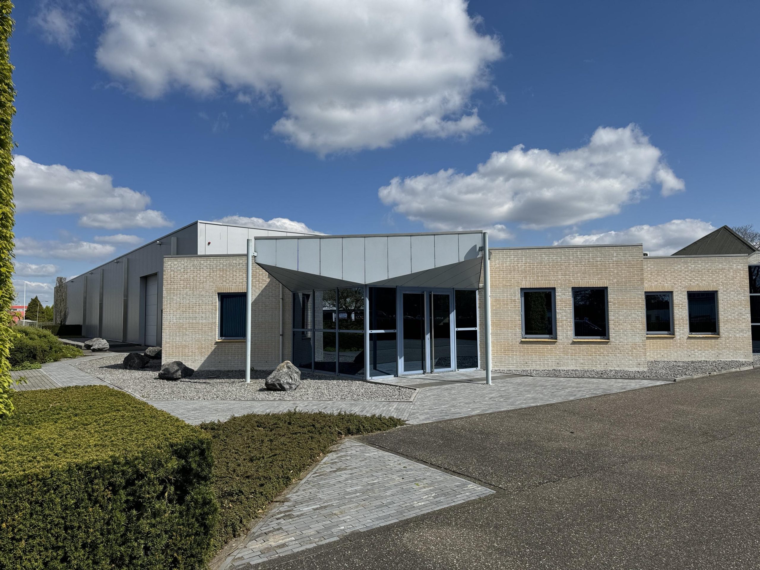 Entree naar het kantoor / showroom die eventueel in overleg nader is in te delen, vanuit de kantoorruimte zijn de hallen te bereiken, uiteraard ook via buiten om.