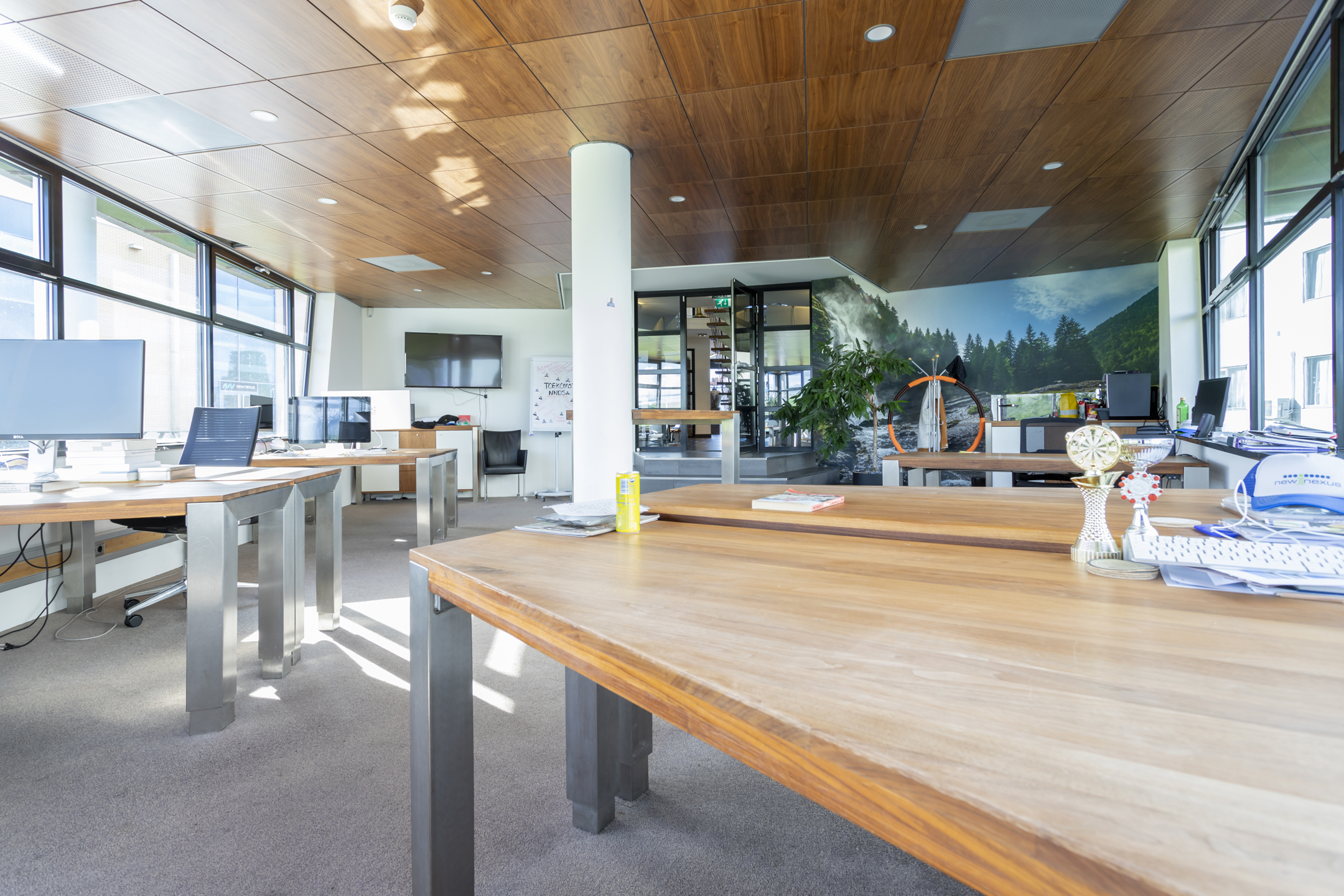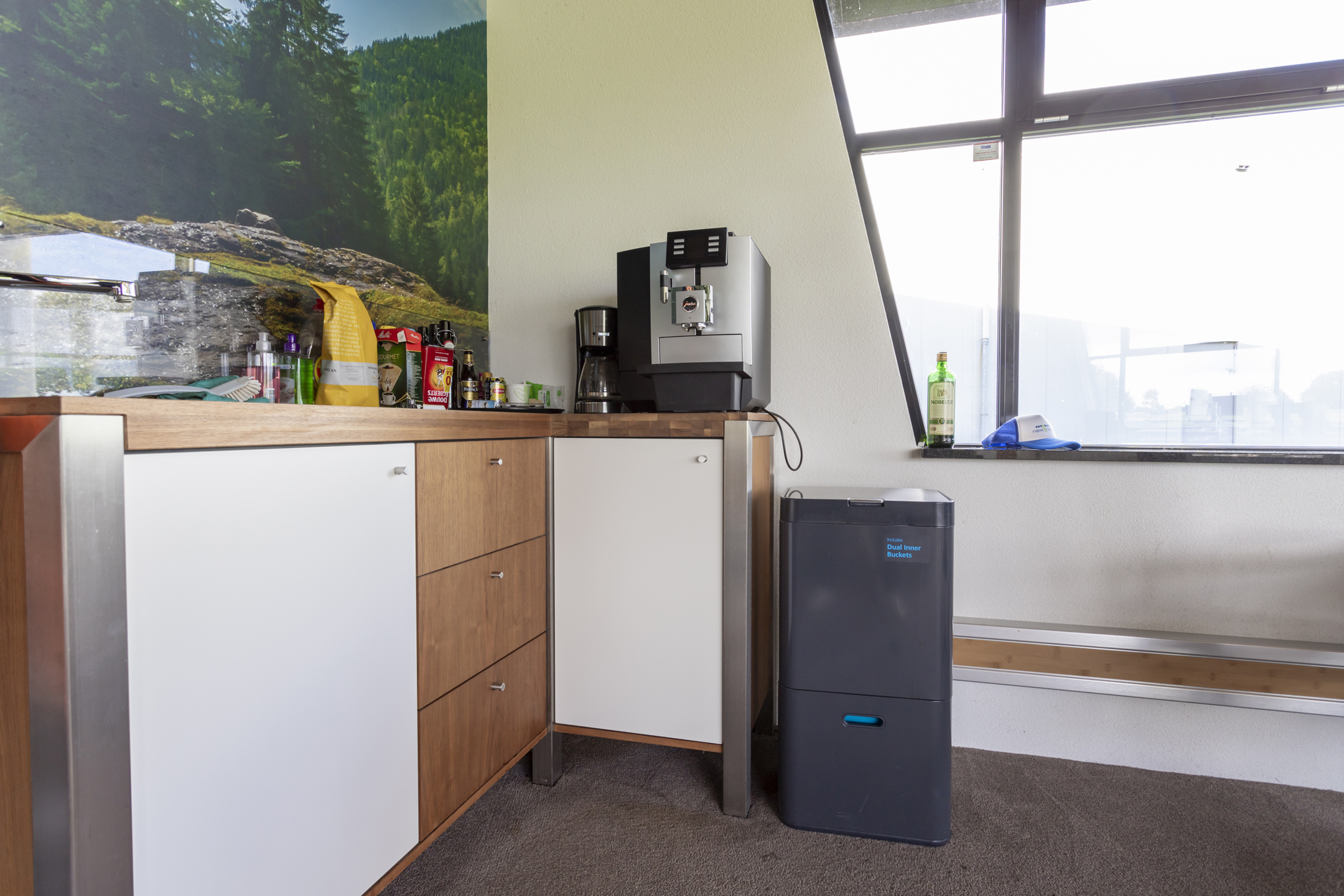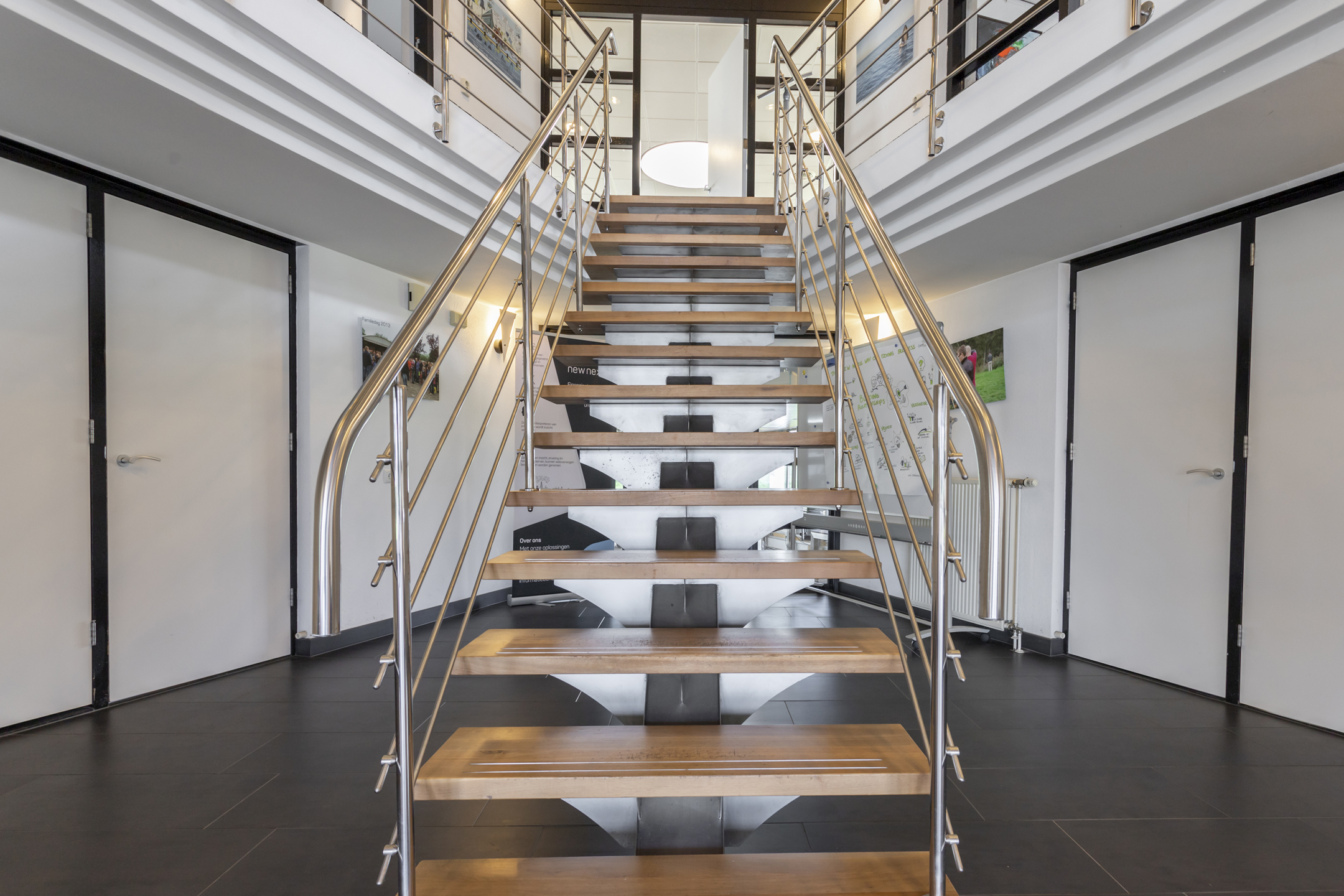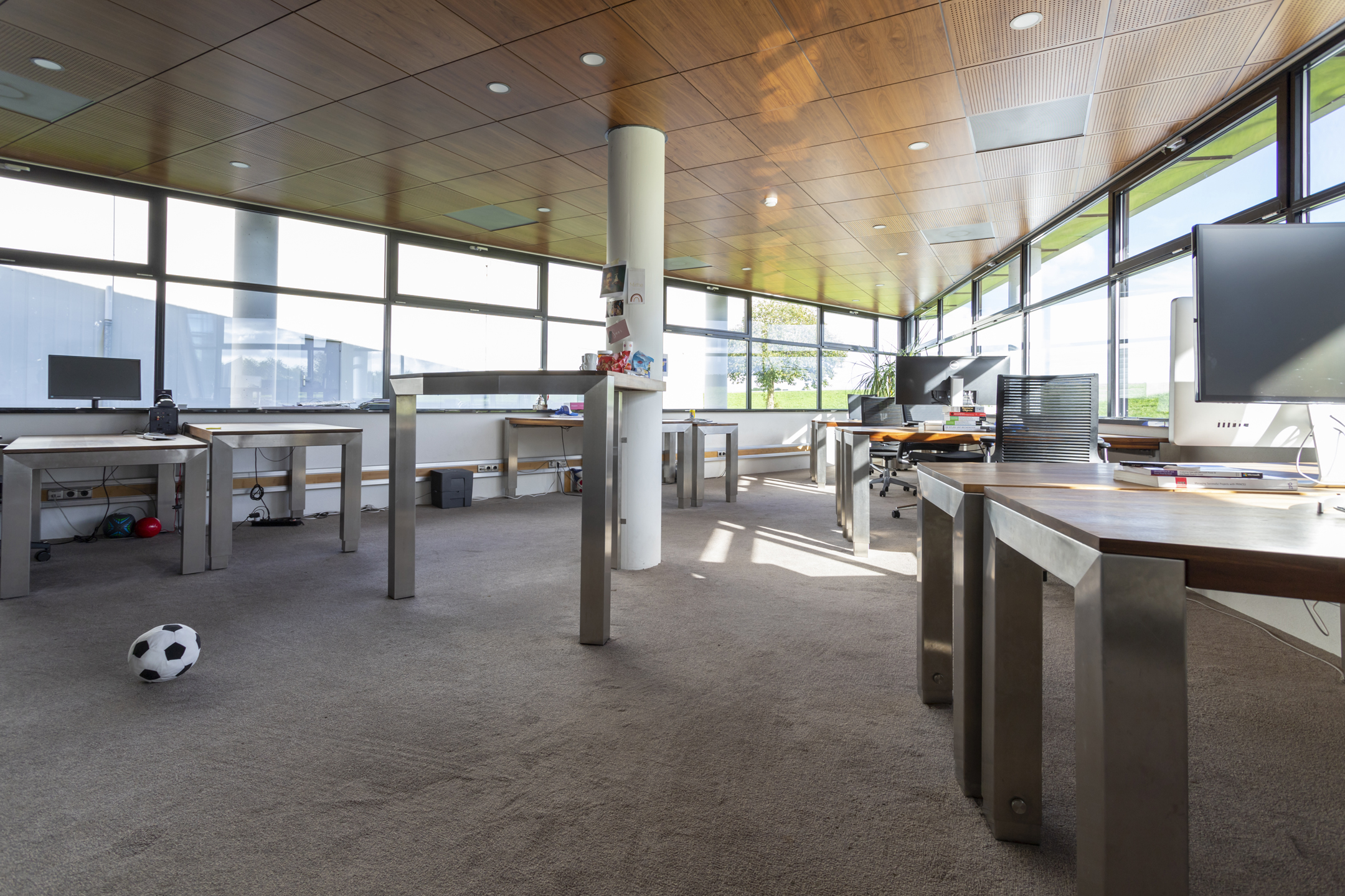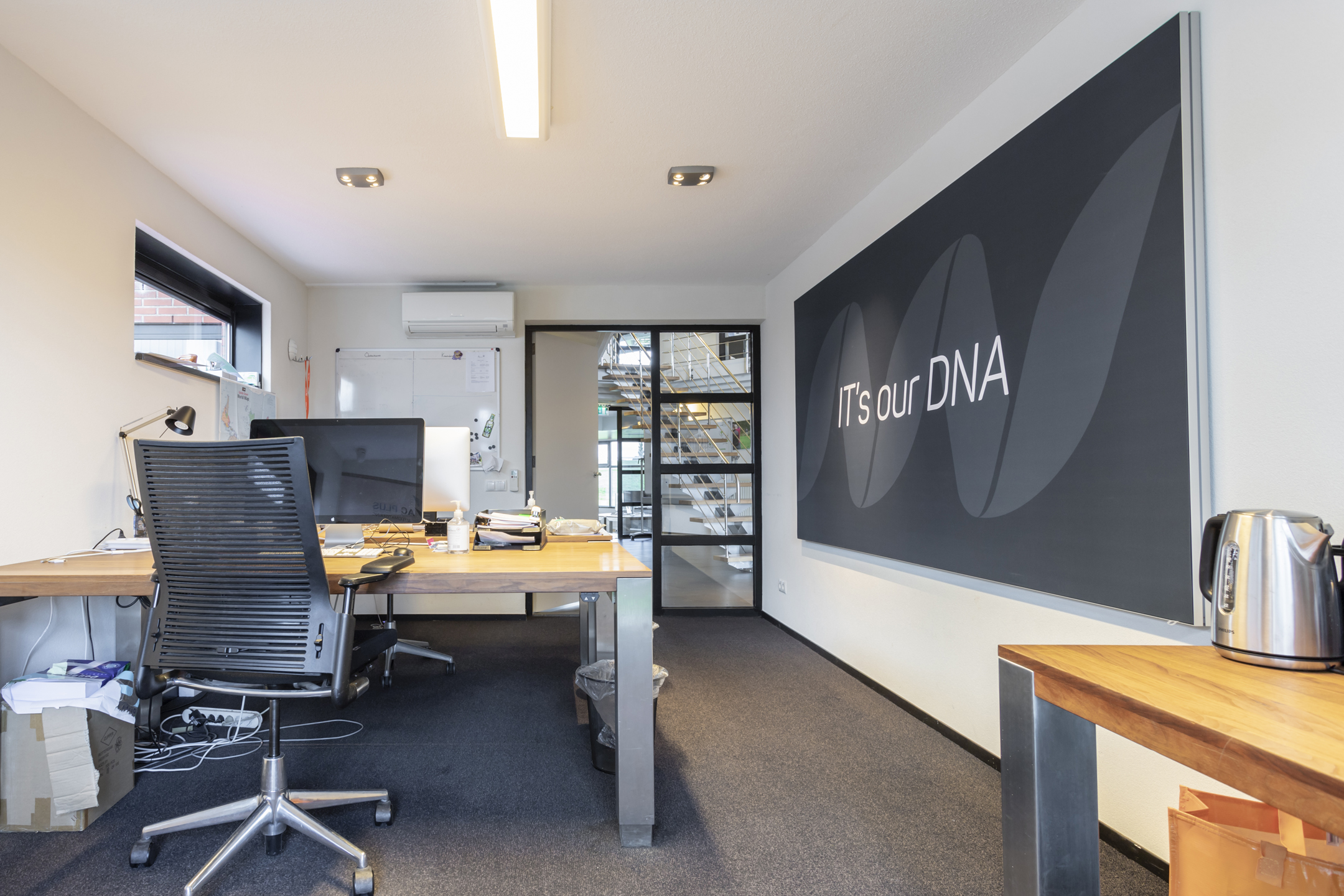 Systeemplafond met spotjes, vloerbedekking, airco, luxe sanitair, luxe pantry, kamerindeling en een unieke vergaderzaal met veel lichtinval.