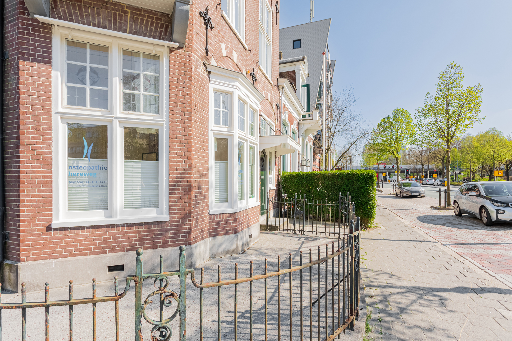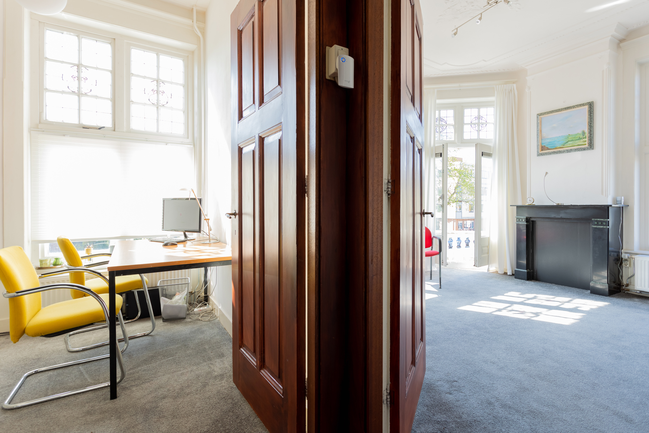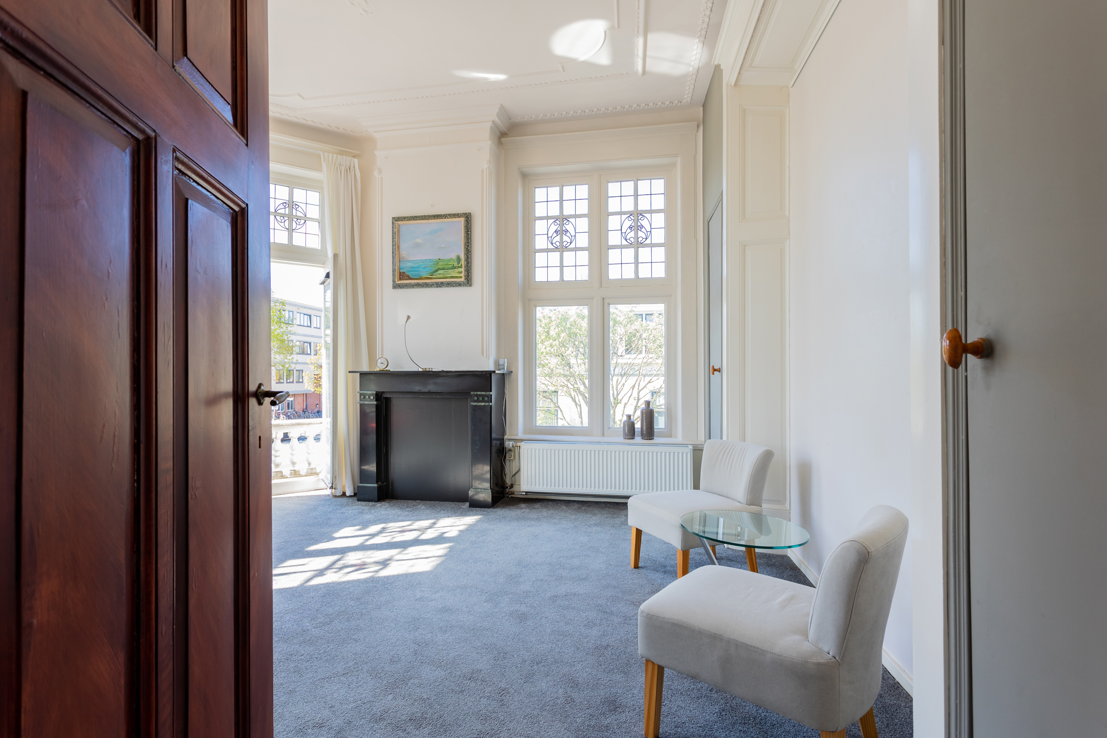 Schitterend kantoor op zichtlocatie aan de Hereweg, hoek Anna Paulownastraat met hoge plafonds op de 1e verdieping van een schitterend 'Herenhuis' bestaande uit een vertrek van ca. 21 m2 en 6 m2 (voorzijde van het pand met balkon). Ideaal als kantoor/praktijkruimte, plus aandeel algemene ruimten 25 m2. Zie ook www.hereweg 114.nl voor de gevestigde bedrijven.