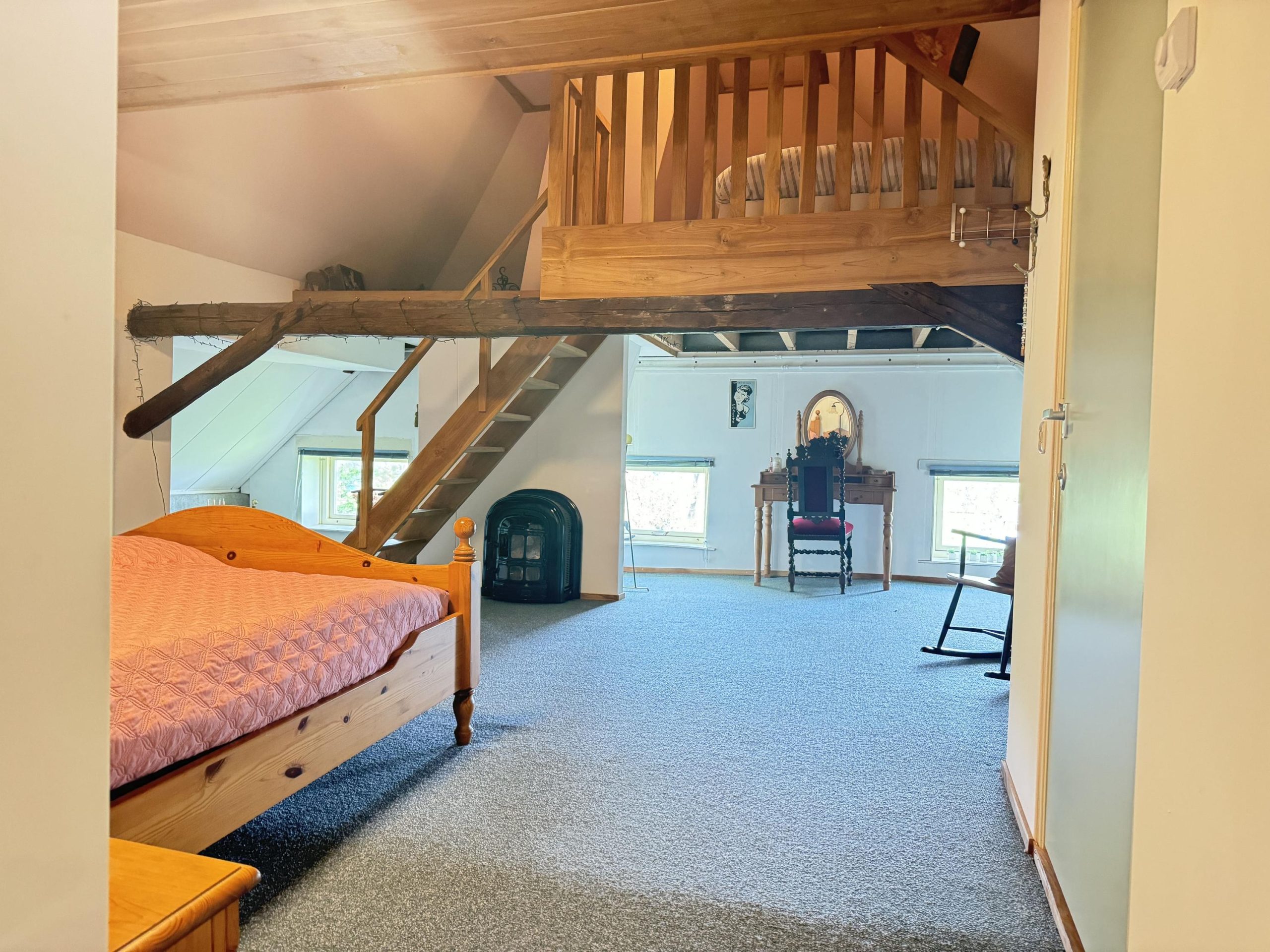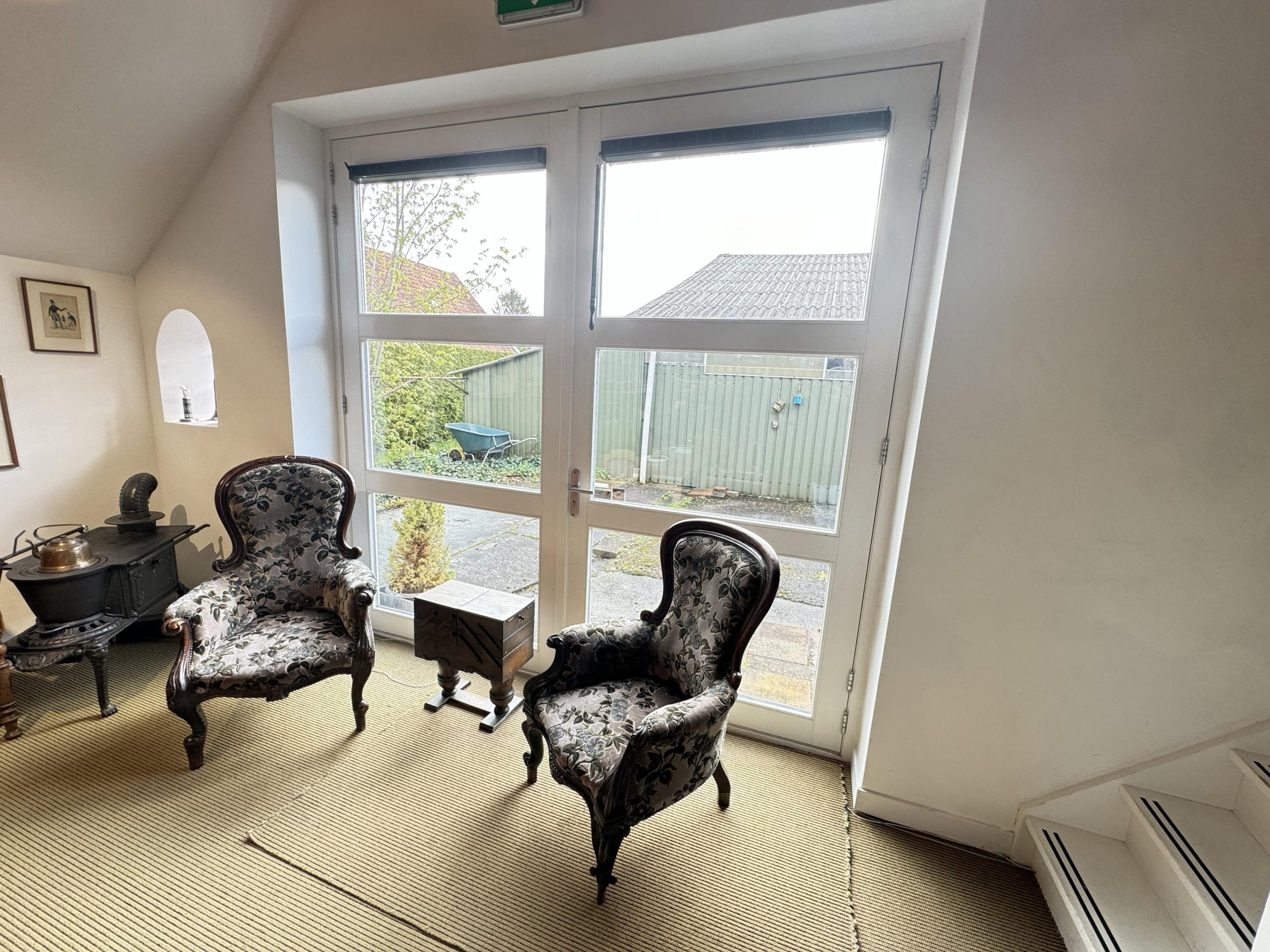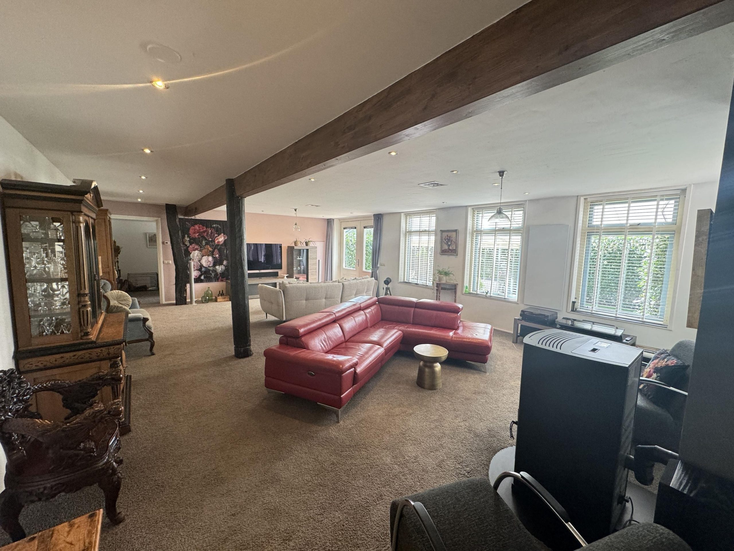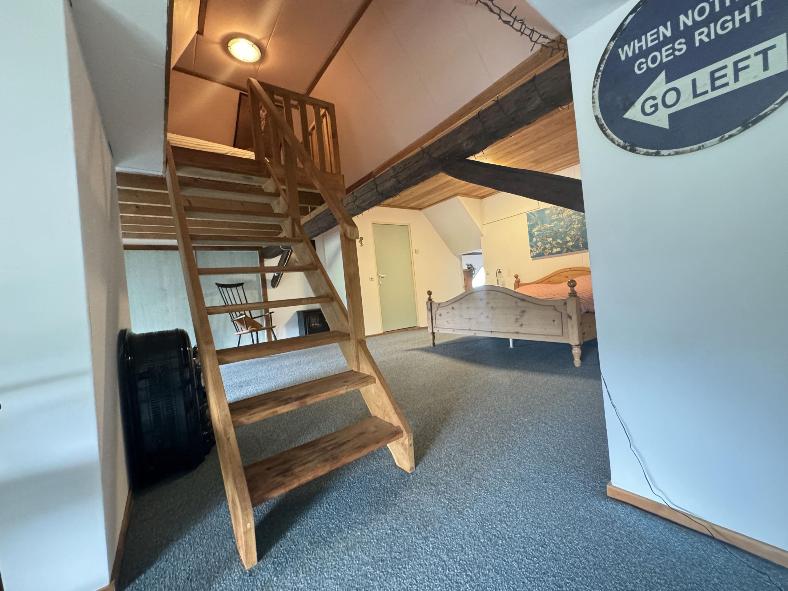Begane grond: Entree van de winkel waarna je je bevindt in een sfeervolle lichte ruimte met uitzicht op de vide. De winkel oogt ruim en is voorzien van een glazen pui over de volledige breedte. De ruimte is voorzien van dakramen en mooie openslaande deuren naar de achterzijde van het object. Er is een toilet aanwezig met voorportaal en vanuit de winkel zijn twee trapopgangen naar de eerste verdieping. Er is een trapopgang vanaf de plek waar op de begane grond een pantry aanwezig is, en er is een tweede trapopgang aan de tegenovergestelde kant van de winkel. Op de eerste verdieping zijn mooi de constructieve elementen zichtbaar van een nader in te delen ruimte. Vanaf deze verdieping kun je binnendoor lopen naar de ruime overloop die weer toegang geeft naar het woonhuis op de begane grond en de eerder benoemde slaapkamer op de eerste verdieping. We speken hier van winkelruimte, maar de huidige indeling leent zich ook uitstekend als inspirerend kantoor of als functionele bedrijfsruimte.