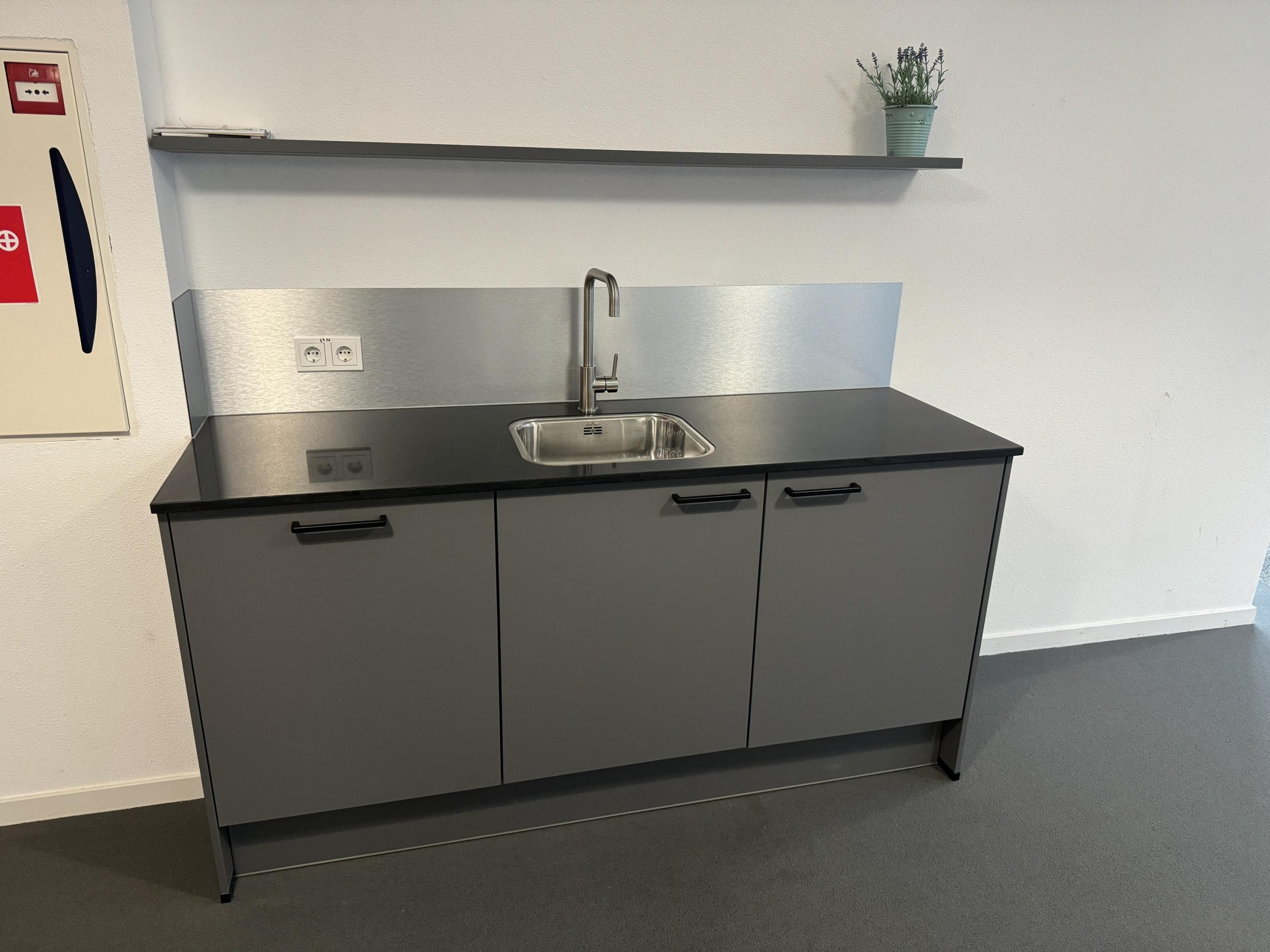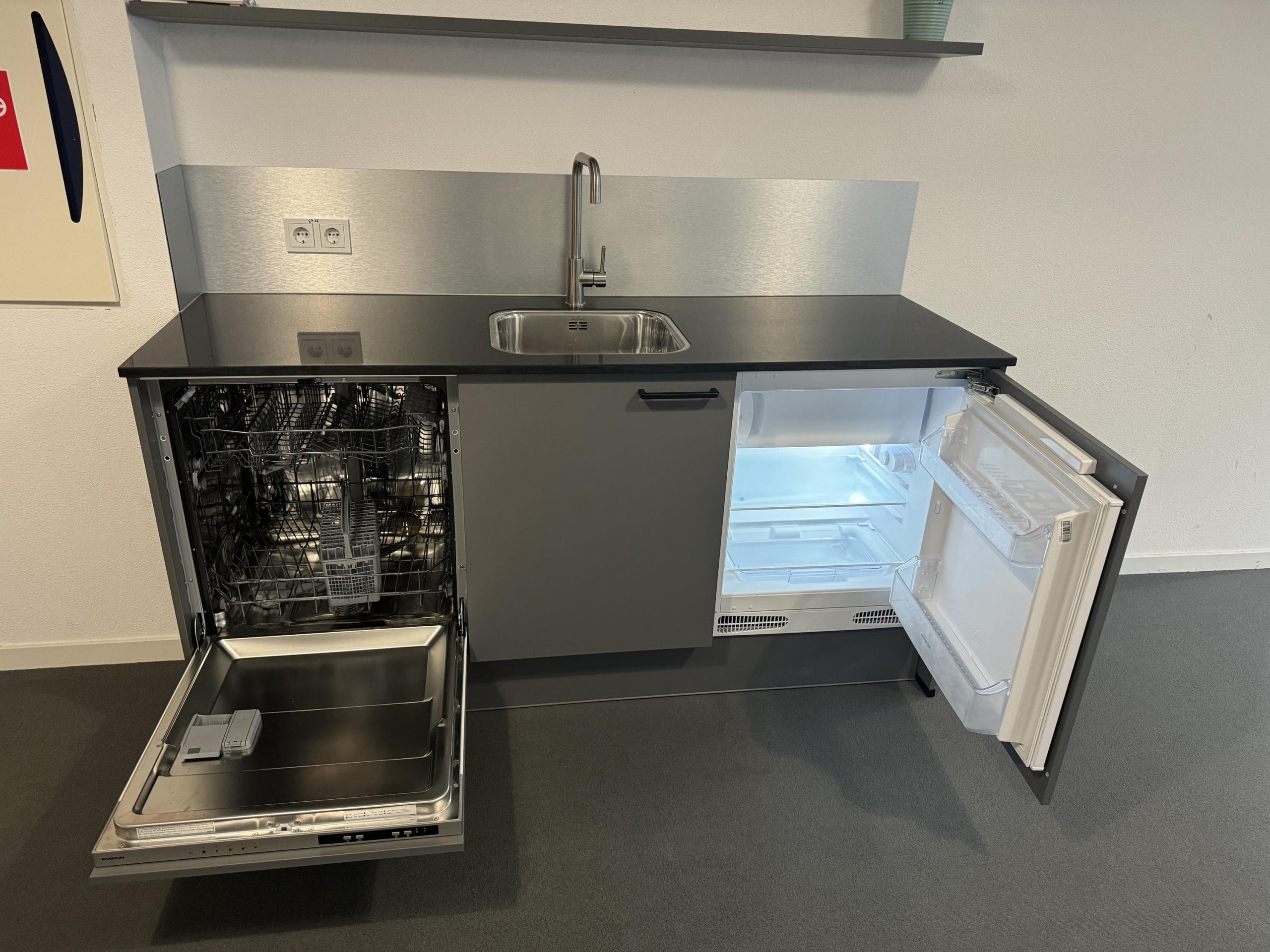 Vloerbedekking, verwarming, elektra, systeemplafond (gedeeltelijk), airco, dubbelglas, pantry met vaatwasser en koelkast en een toilet met fontein.
