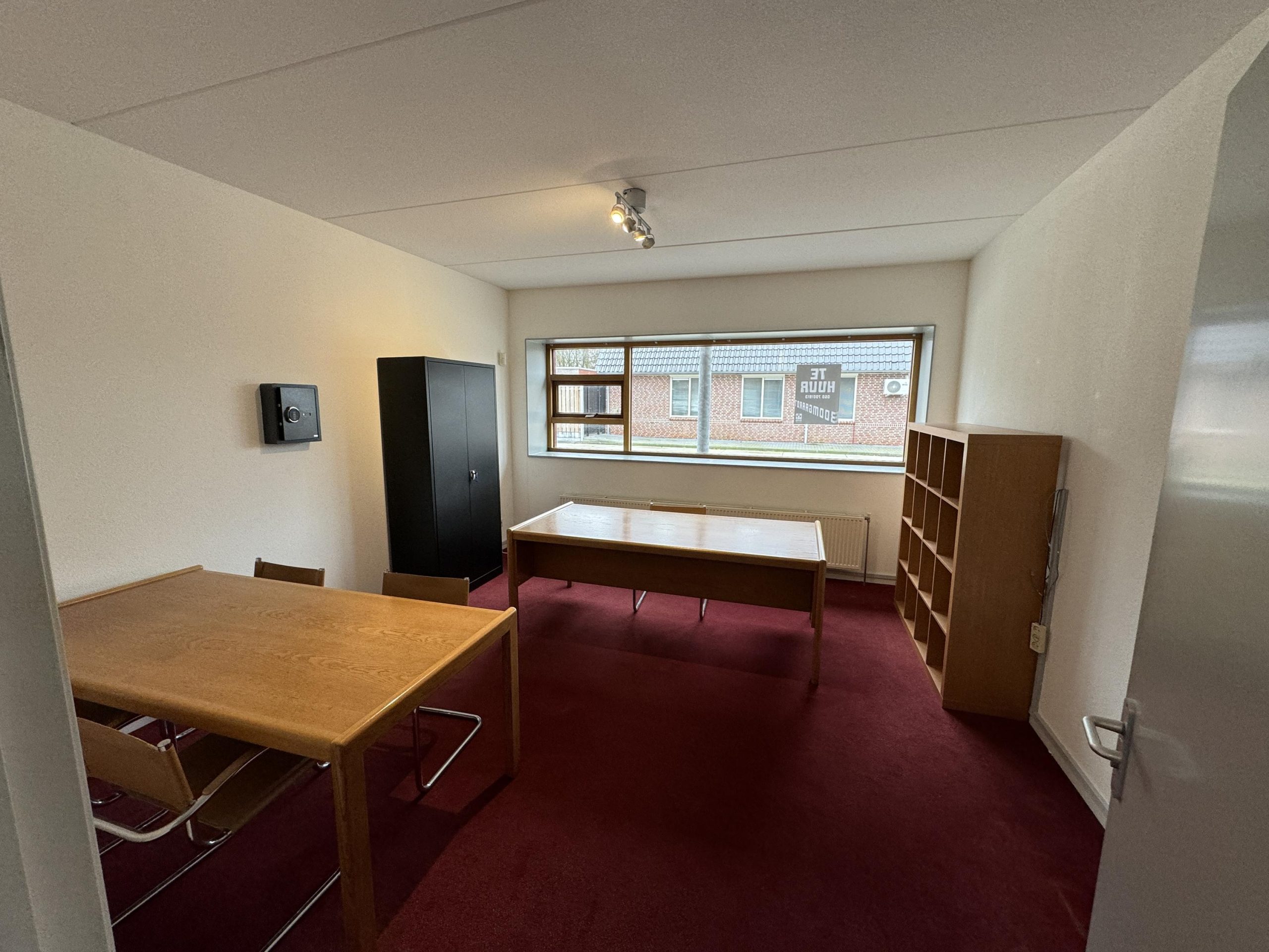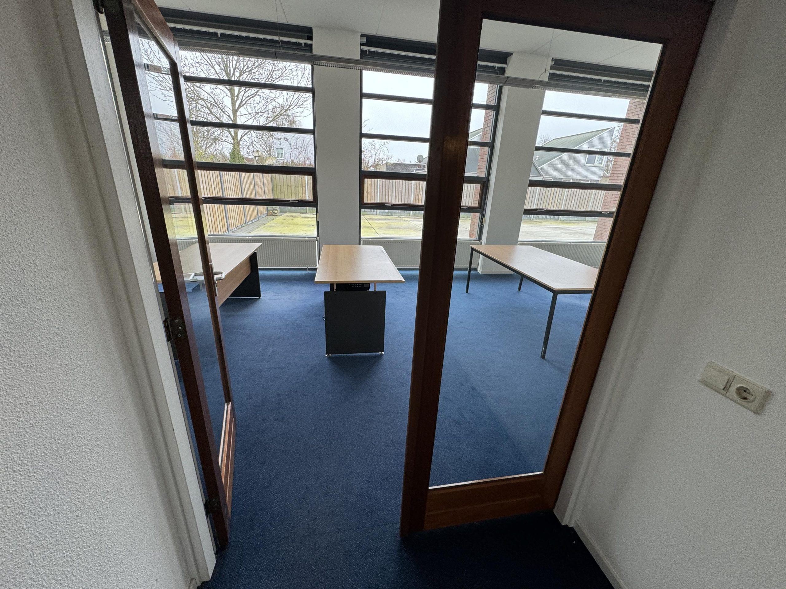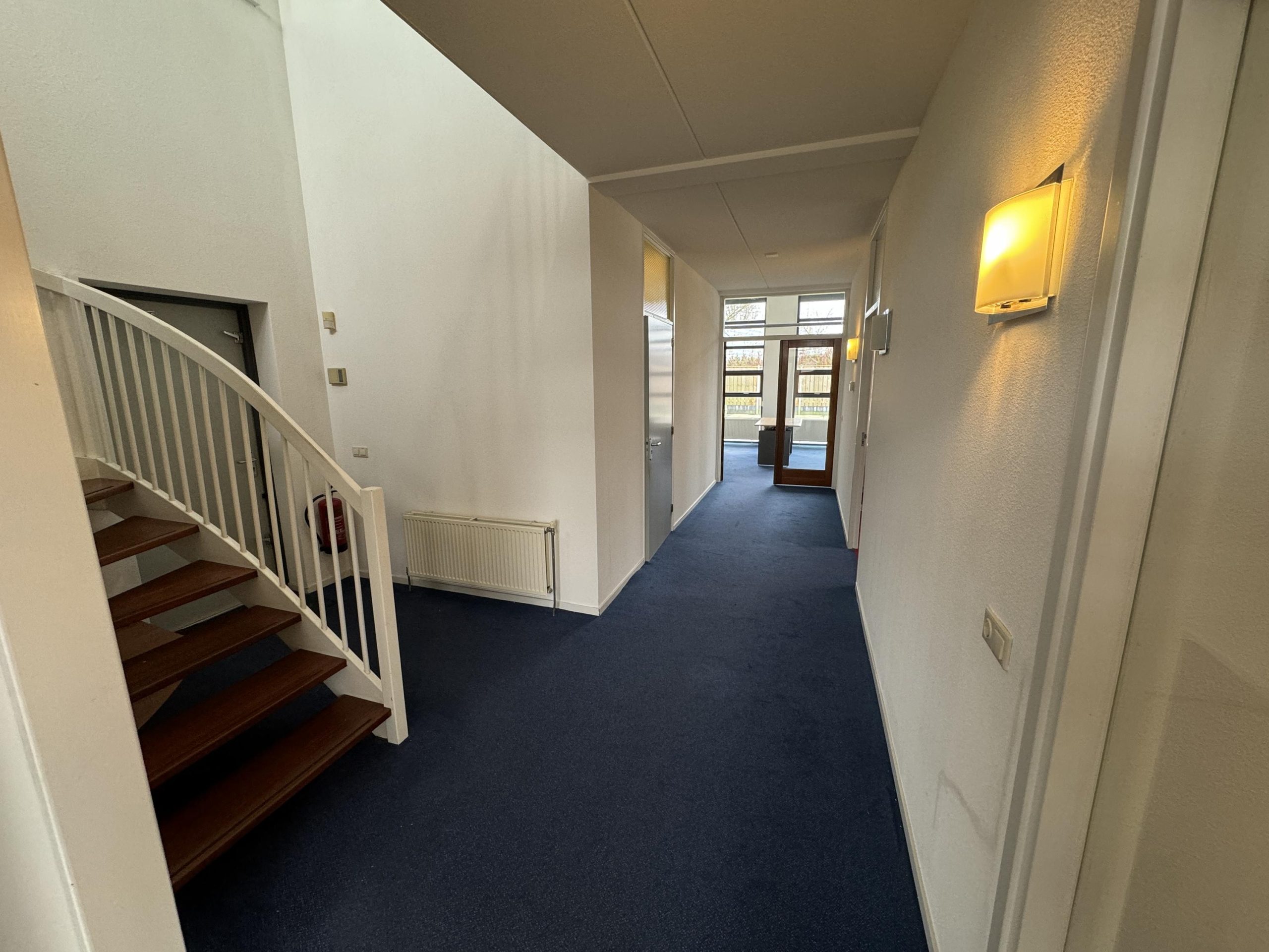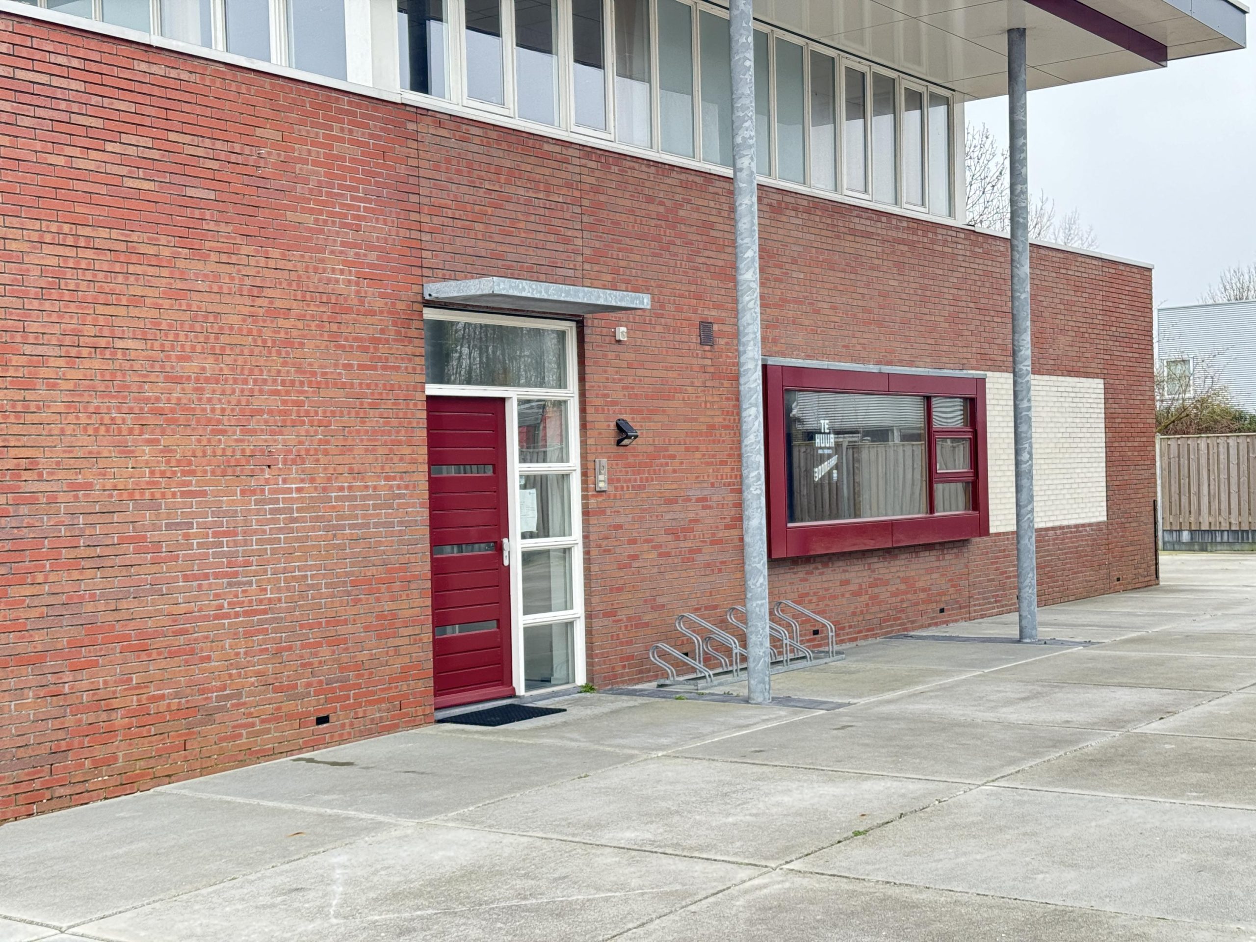 Begane grond: Entreedeur aan de zijkant, vanaf hier zijn 3 kantoorruimten en de toiletten te bereiken. Verder is hier de trap naar de eerste verdieping.