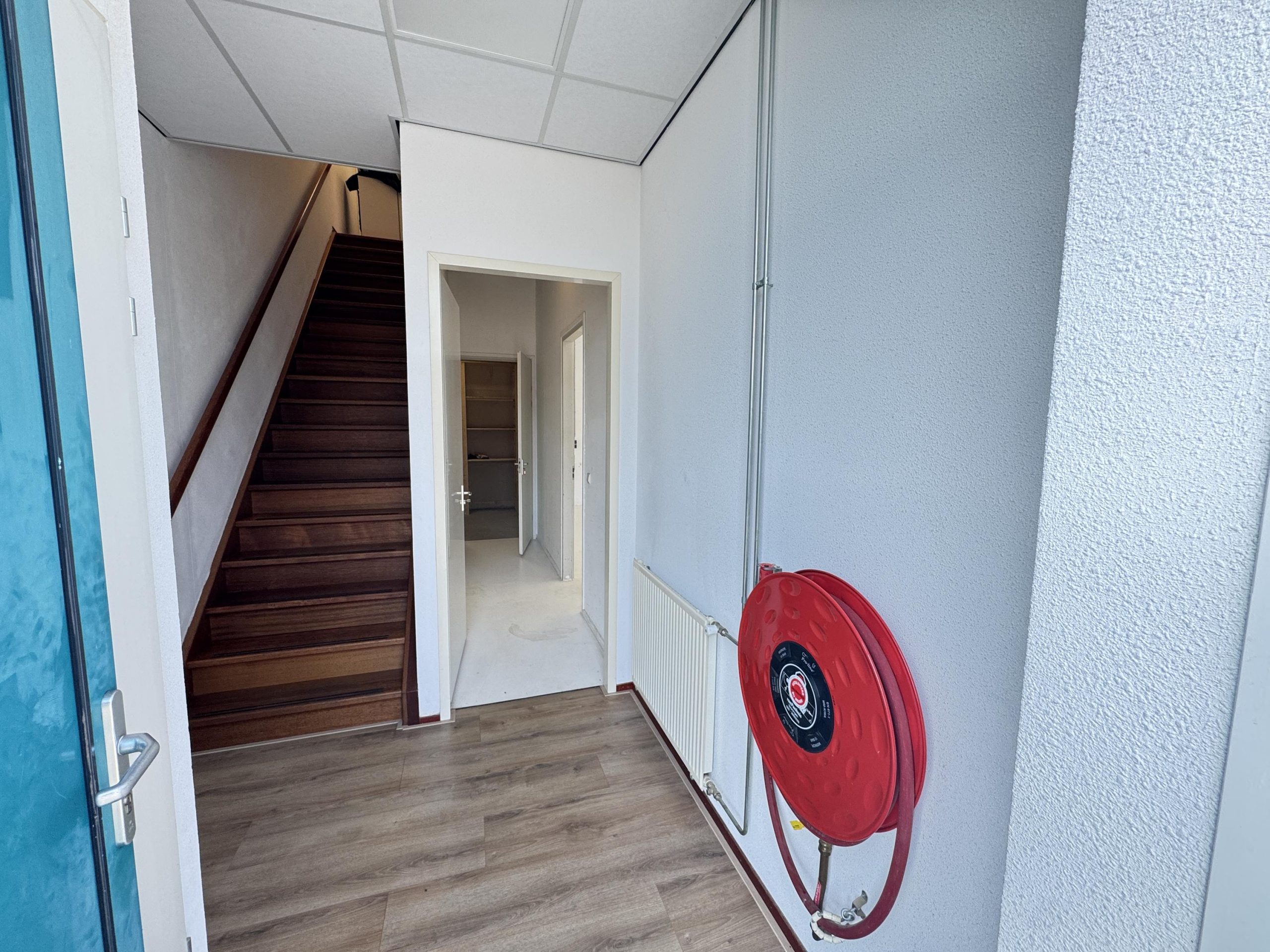 Entreedeur naar de hal, vanuit hier is de bedrijfsruimte op de begane grond te bereiken en de trap naar de eerste verdieping.