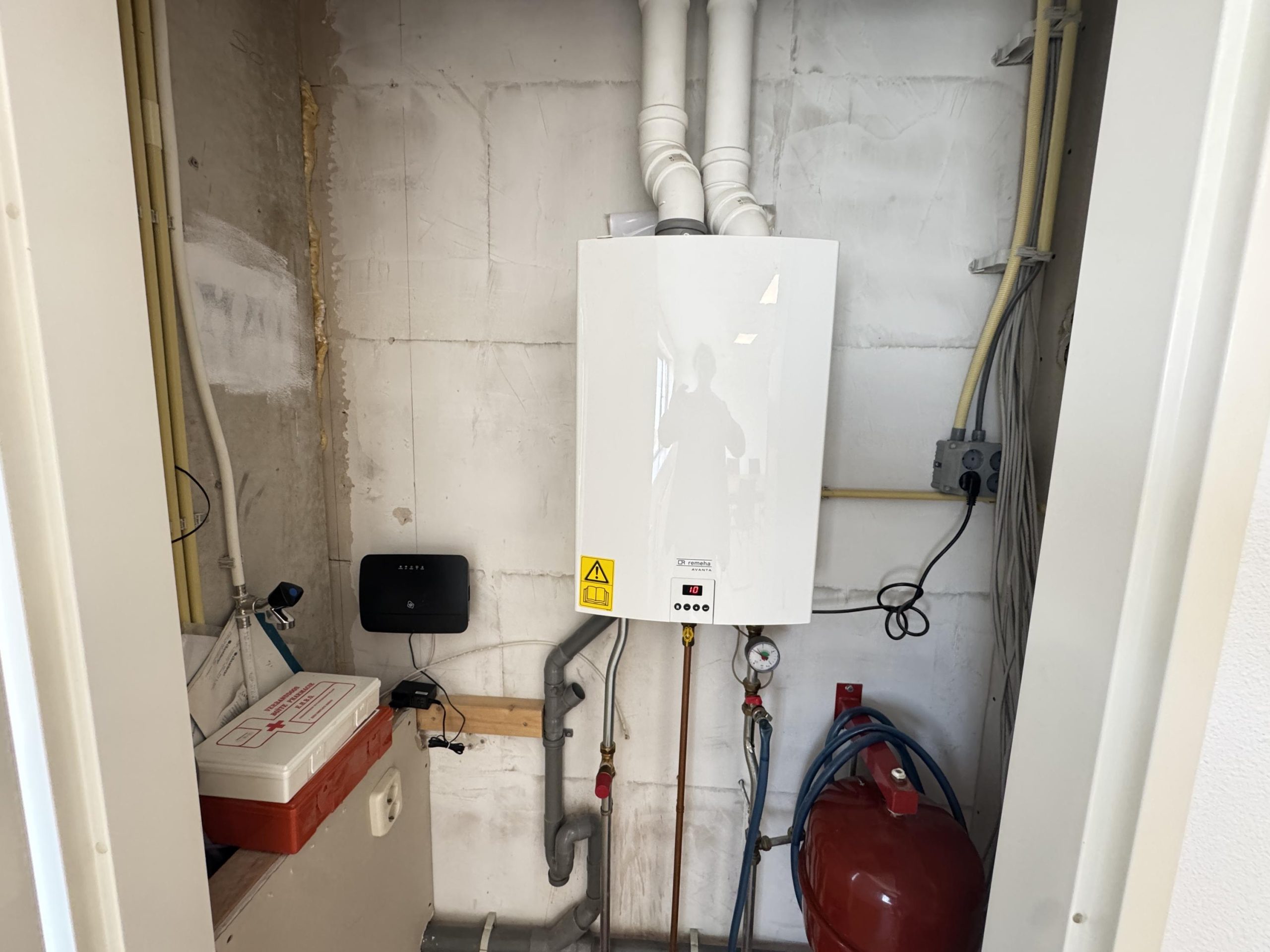 Systeemplafond met armaturen, Cv-ketel met radiatoren, pantry, kabelgoten, elektrische overheaddeur, hardhouten trap, te openen ramen, brandslanghaspel, dubbele beglazing en een toilet met fontein.
