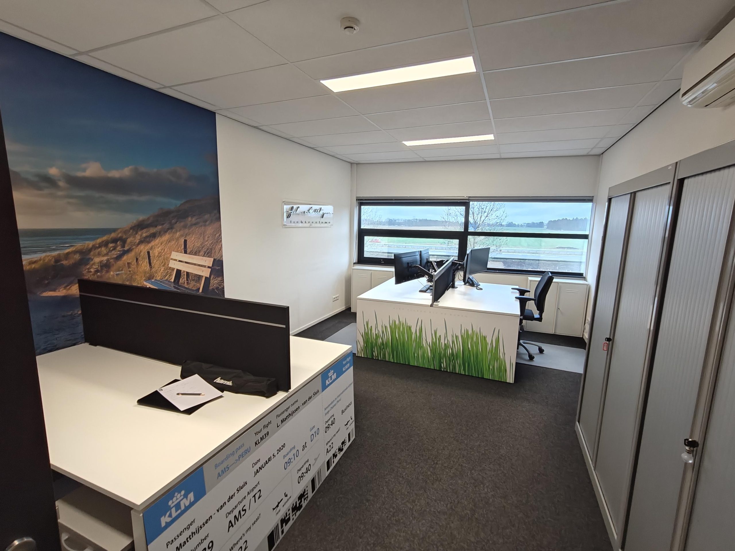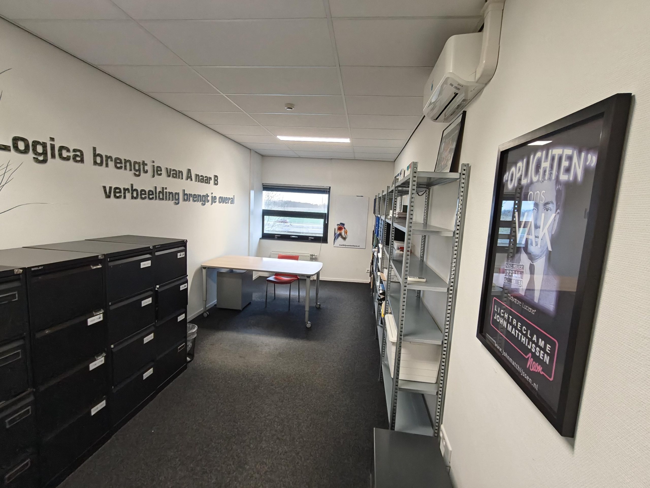 Aangeboden een op een ZICHTLOCATIE gelegen TURN-KEY kantoorruimte op de eerste verdieping van in totaal ca. 125 m2. Het gehuurde bestaat uit drie kantoorruimten op de eerste verdieping van respectievelijk ca. 24 m2, ca. 32 m2 en ca. 36 m2 en een aandeel in de algemene ruimte (hal/entree). Verder is er een strakke pantry met vaatwasser en inbouw koelkast, twee toiletten met fontein en een berging aanwezig. Het gehuurde is te bereiken via de trap op de begane grond welke verhuurd is aan Matthijssen Lichtreclame. Daarnaast is er spreekruimte van ca. 18 m2 op de begane grond waar huurder in overleg met Matthijssen Lichtreclame gebruik van kan maken. Gezien het feit dat de entree van het gehuurde via Matthijssen Lichtreclame is, gaat de expliciete voorkeur uit voor huurder met soortgelijk bedrijf bv in de marketing- of reclamebranche. Huurder kan conform de artist impression (laatste foto) op eigen kosten reclame aanbrengen op de gevel, dit in afstemming met en goedkeuring van verhuurder. Verder beschikt het gehuurde over energielabel A+.