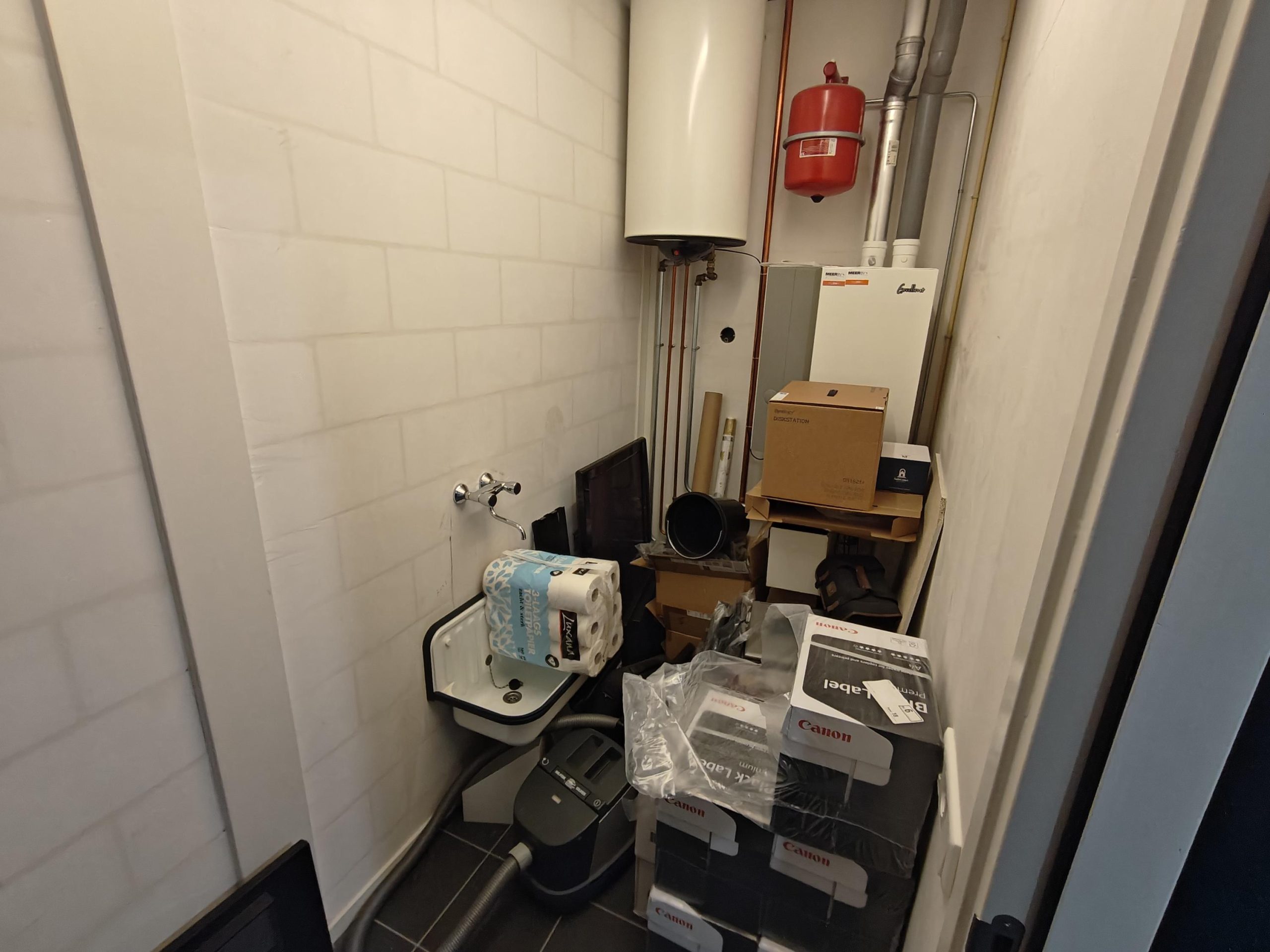 Cv-ketel met radiatoren, systeemplafond met ledverlichting, vloerbedekking, elektra, pantry, drie airco's en twee toiletten met fontein.