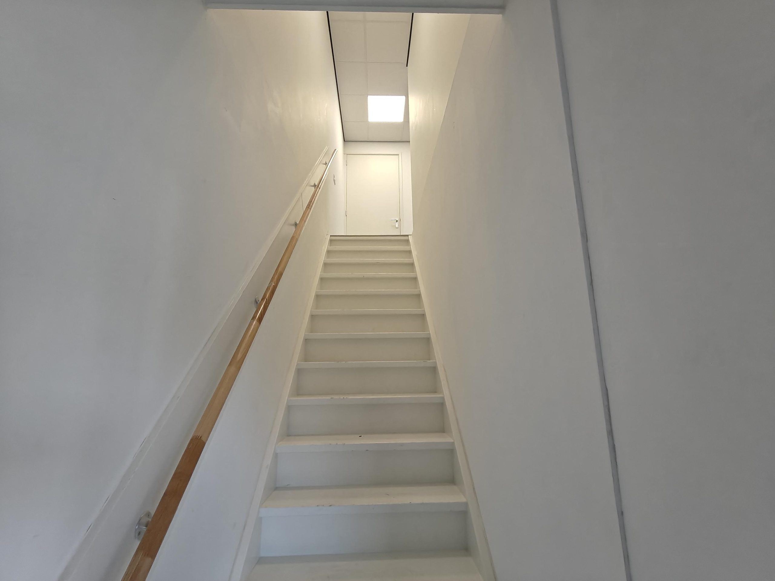 Entreedeur aan de zijkant van het object naar de gemeenschappelijke entreeruimte, vanuit hier is met een trap de eerste verdieping te bereiken. De eerste verdieping bestaat uit een grote kantoorruimte, een spreekruimte, een pantry en een toilet.