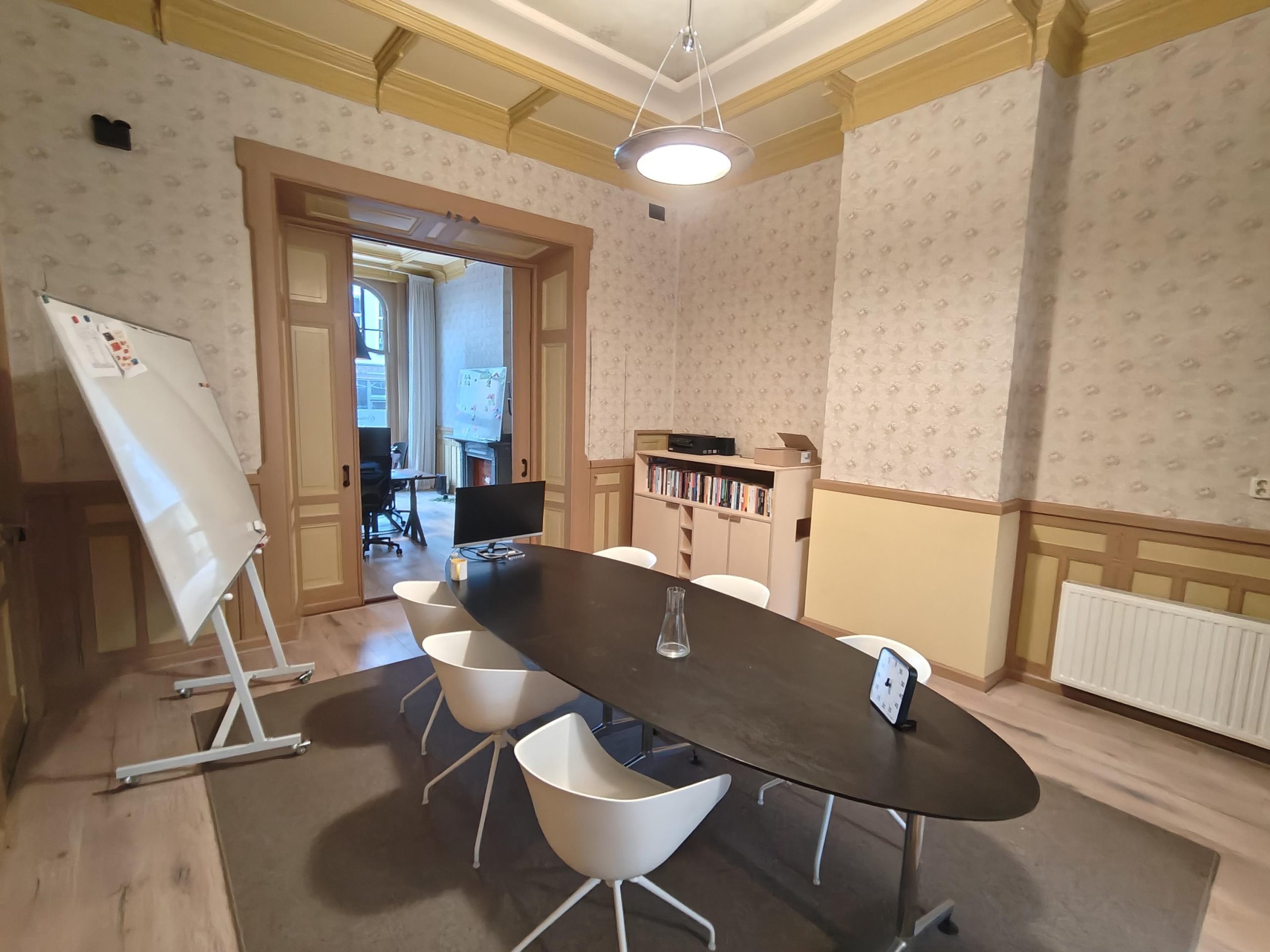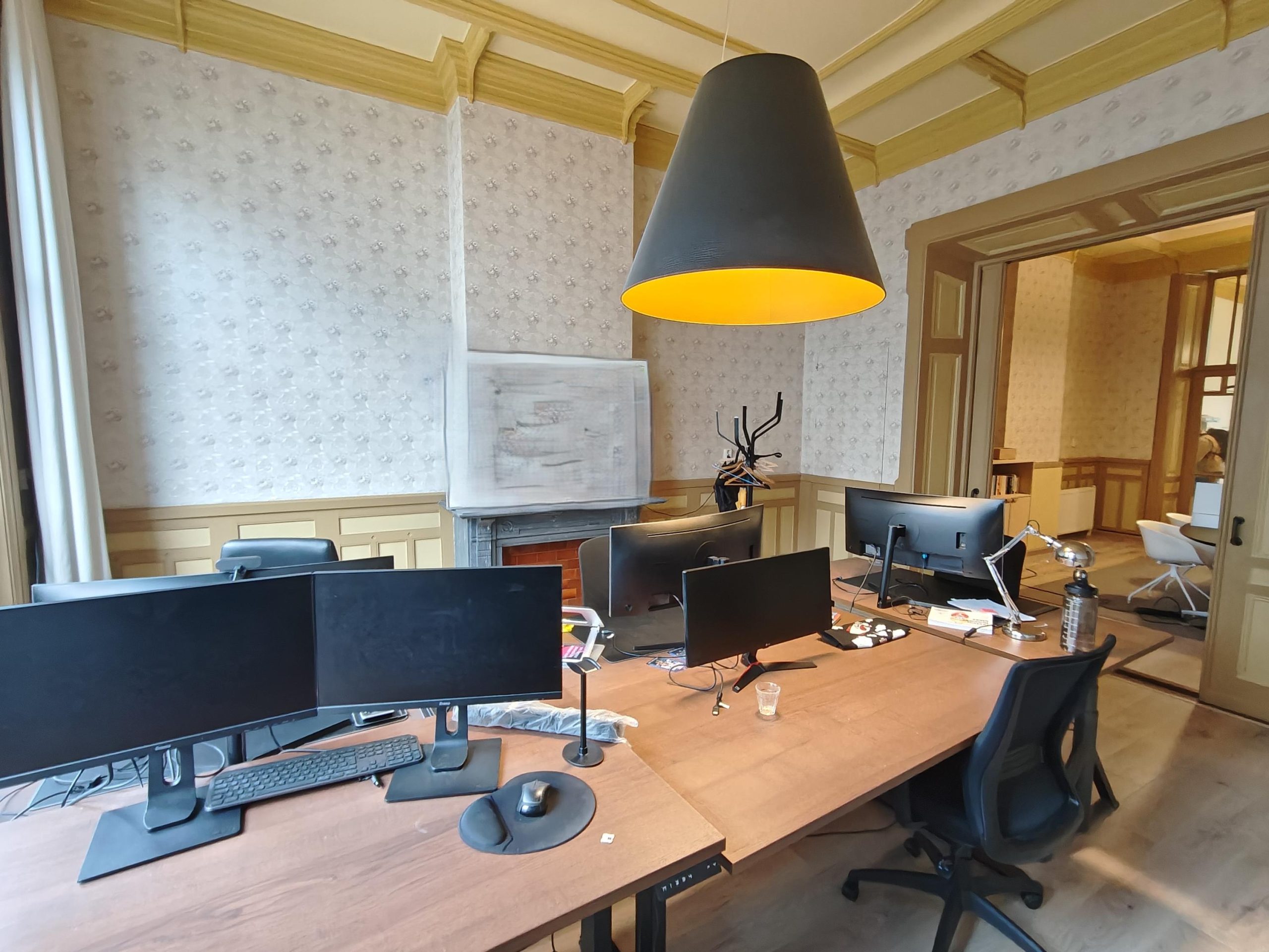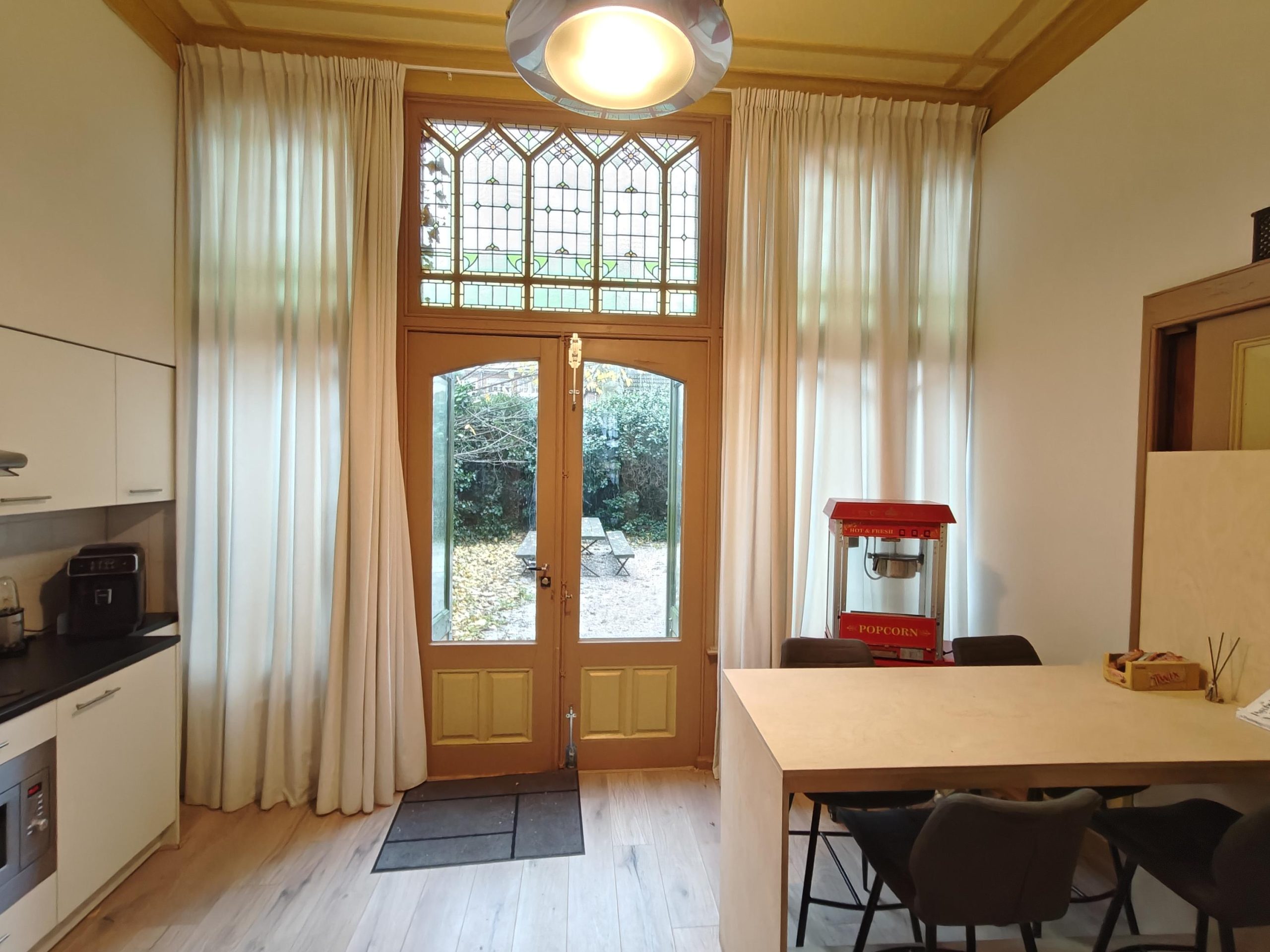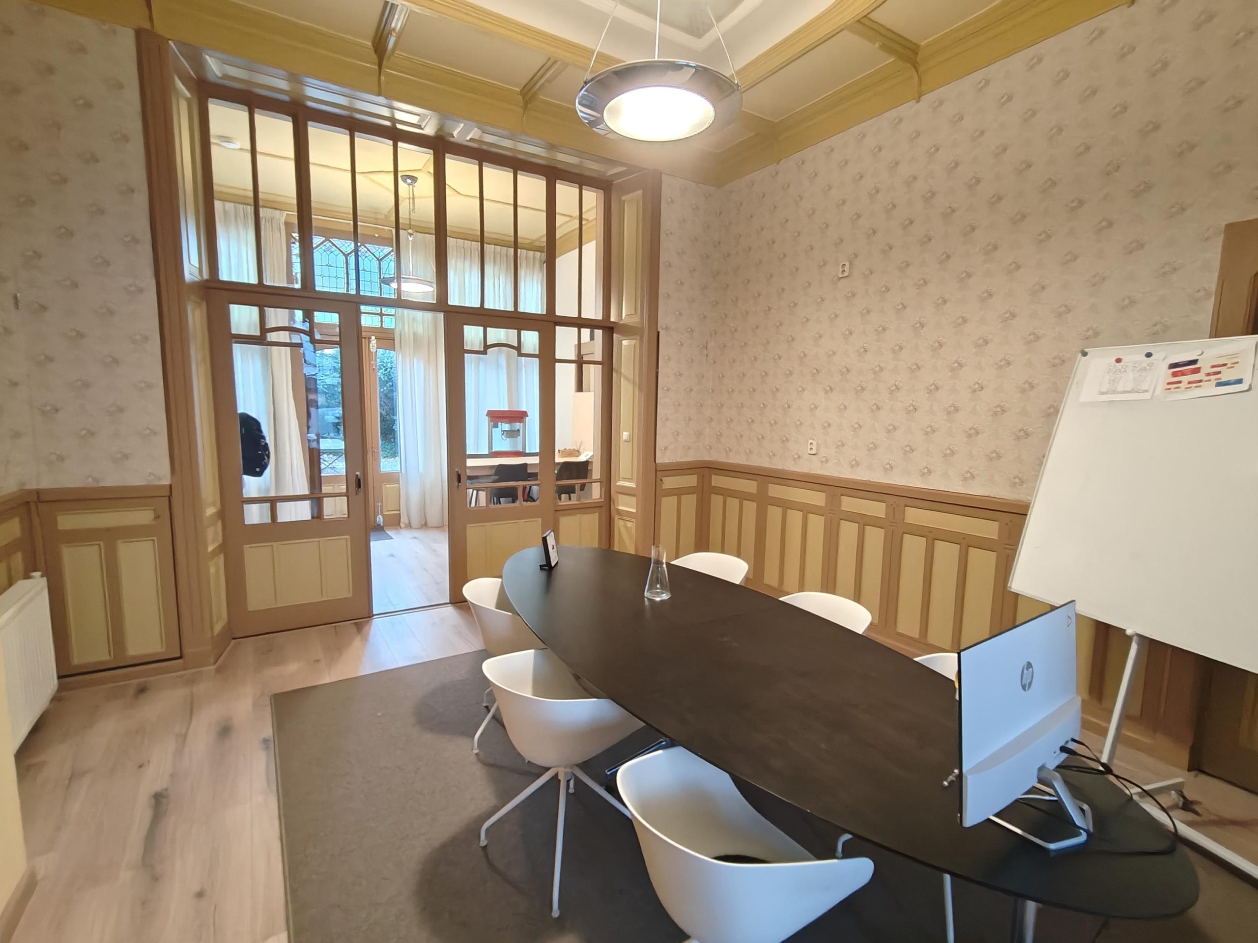 Cv-ketel met radiatoren, elektra, keuken, schuifdeuren tussen beide kantoorruimtes, openslaande tuindeuren, stadstuin, 1 parkeerplaats (tegen betaling) en originele elementen aan het pand.