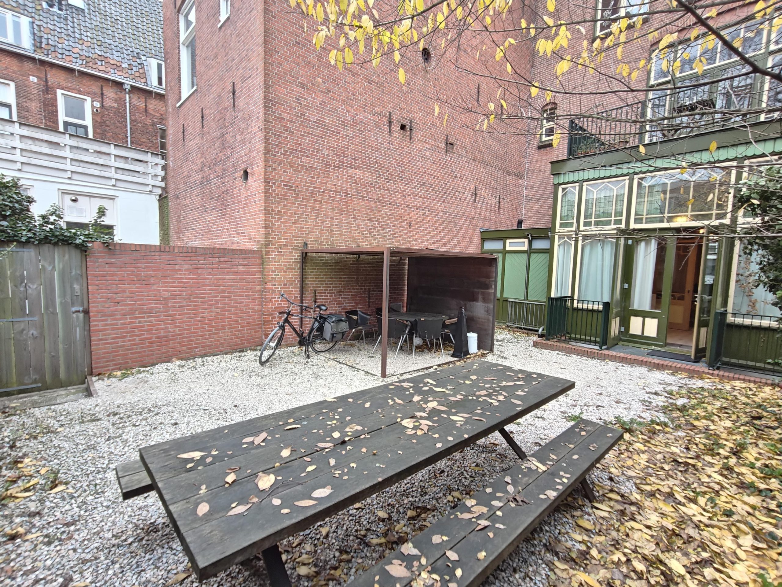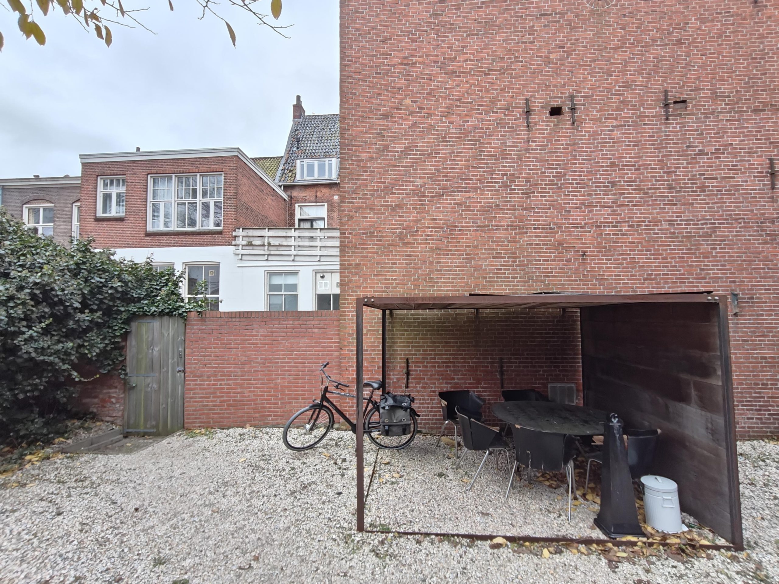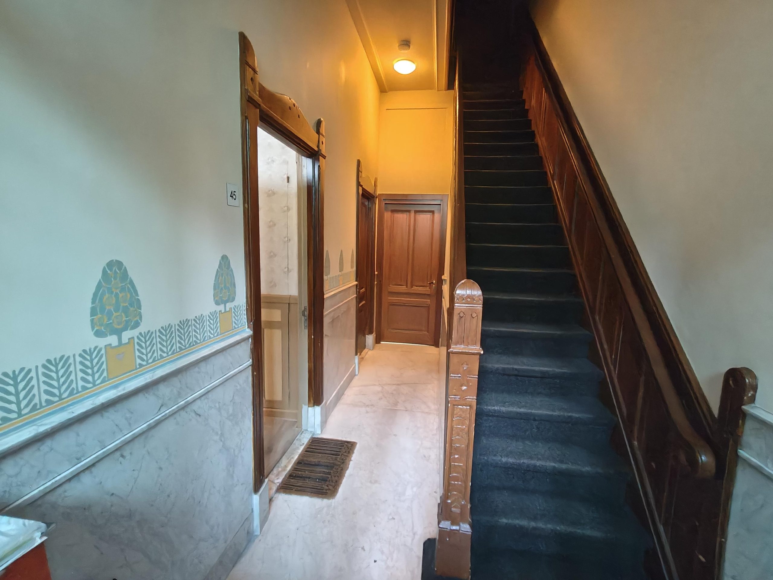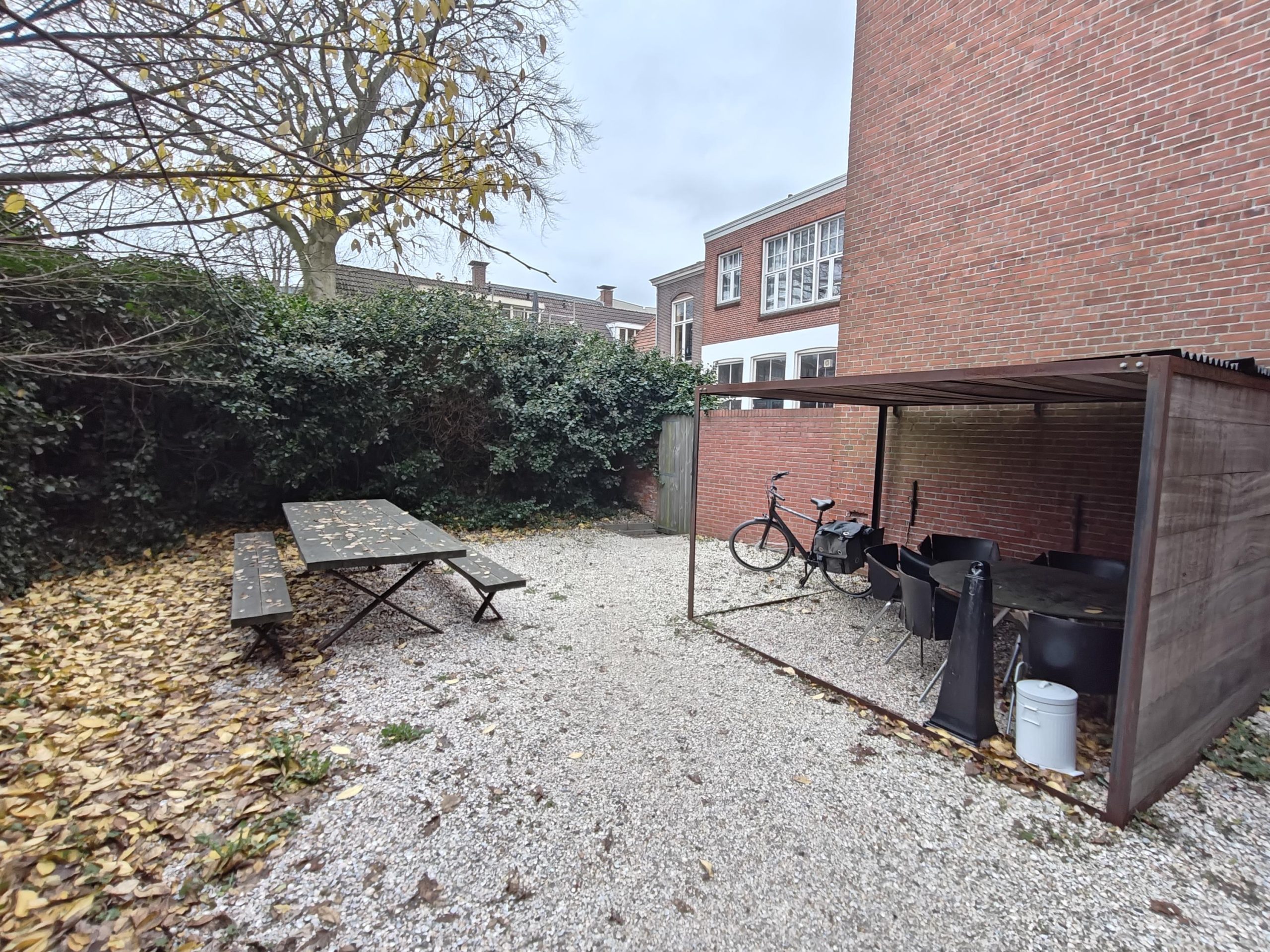 Cv-ketel met radiatoren, elektra, keuken, schuifdeuren tussen beide kantoorruimtes, openslaande tuindeuren, stadstuin, 1 parkeerplaats (tegen betaling) en originele elementen aan het pand.