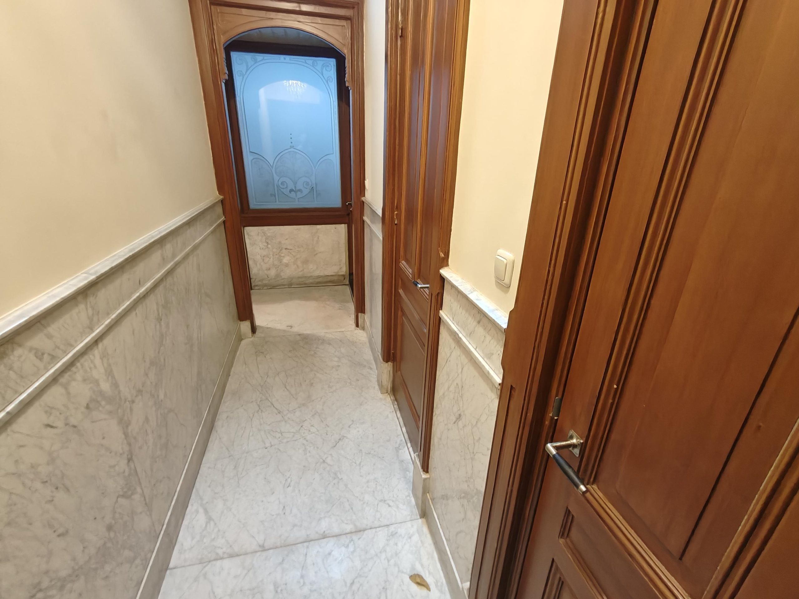 Entree/hal, met trapopgang naar de beletage, toiletten en een tweetal kantoorruimten voorzien van schuifdeuren, een keuken in de achterste ruimte en met openslaande tuindeuren naar de ruime stadstuin.