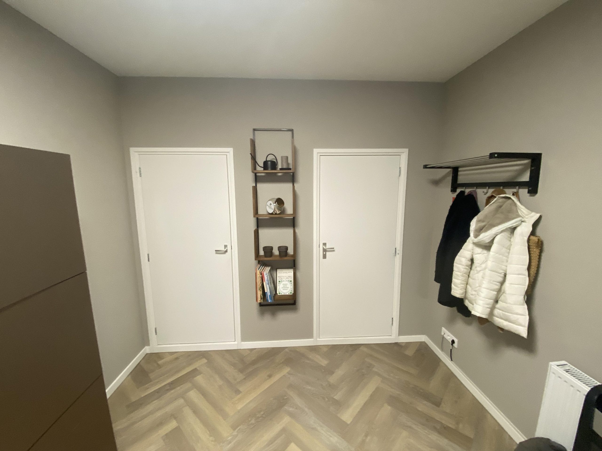 Visgraat vloer, strakke pantry en toilet, twee spreekkamers en radiatoren.