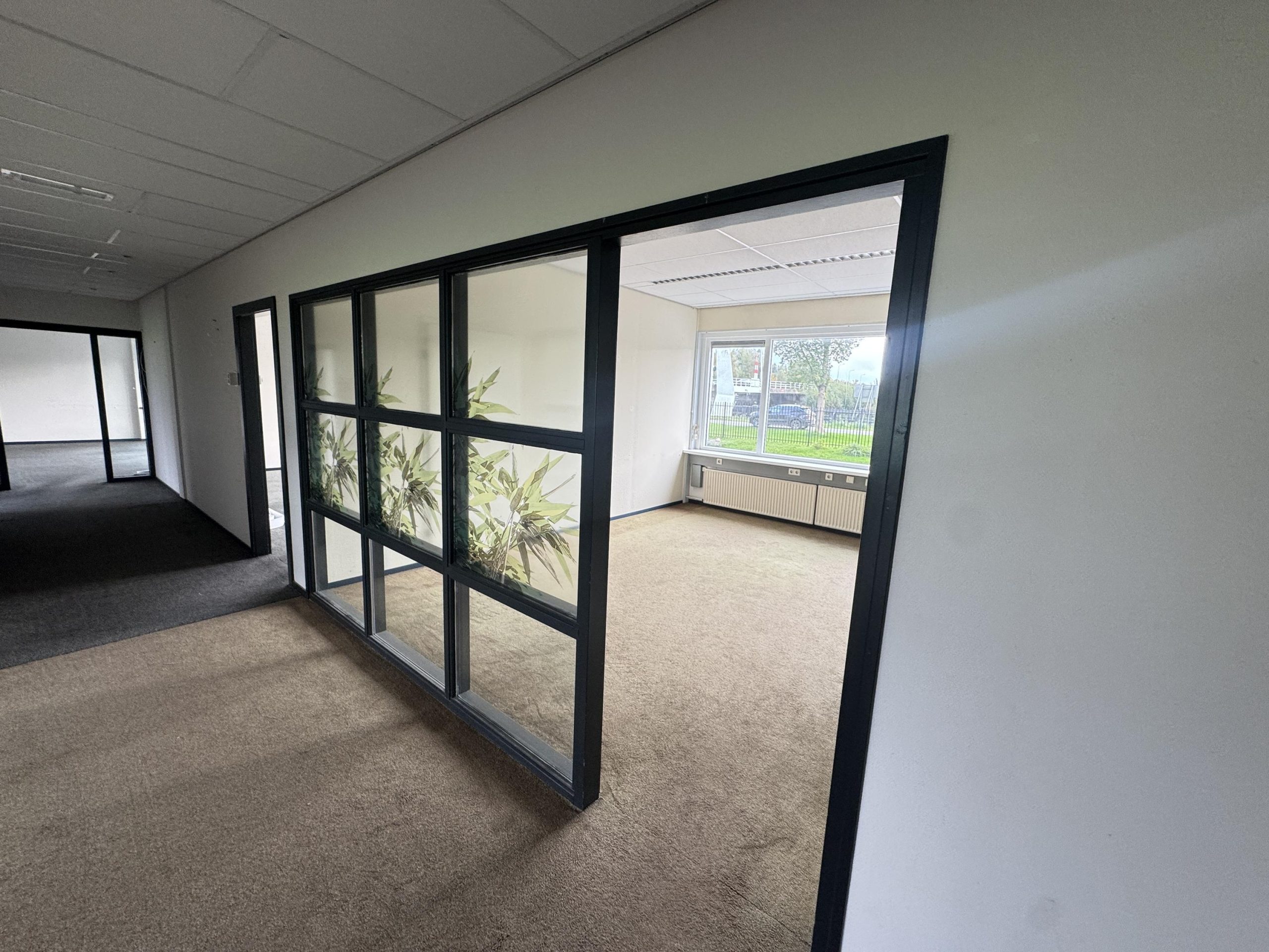 Entree naar de hal met trapopgang. Vanuit de hal zijn alle kantoorruimtes op de begane grond te bereiken. Via de trapopgang is de eerste verdieping te bereiken met hier ook een hal met toegang tot alle kantoorruimtes.