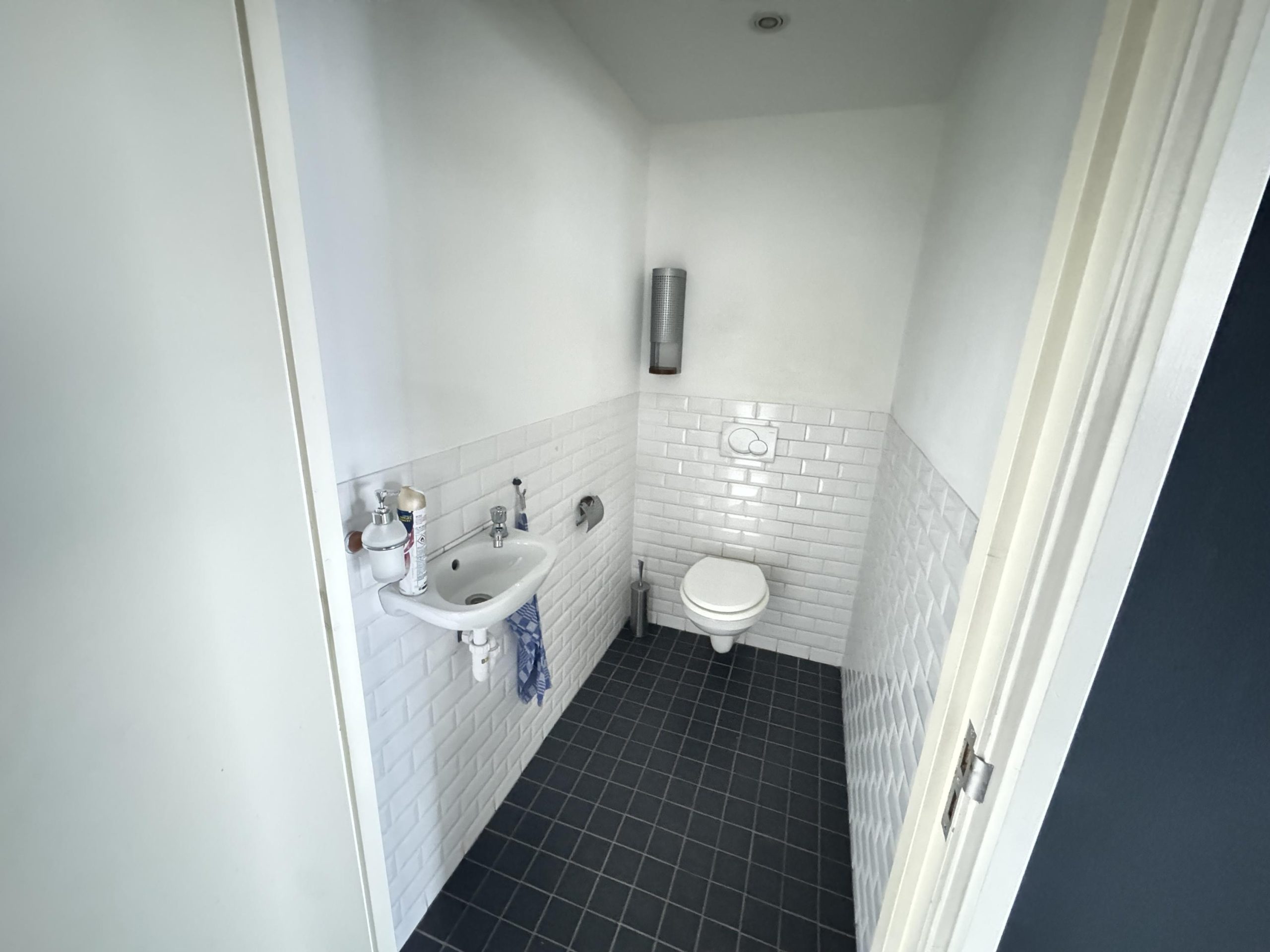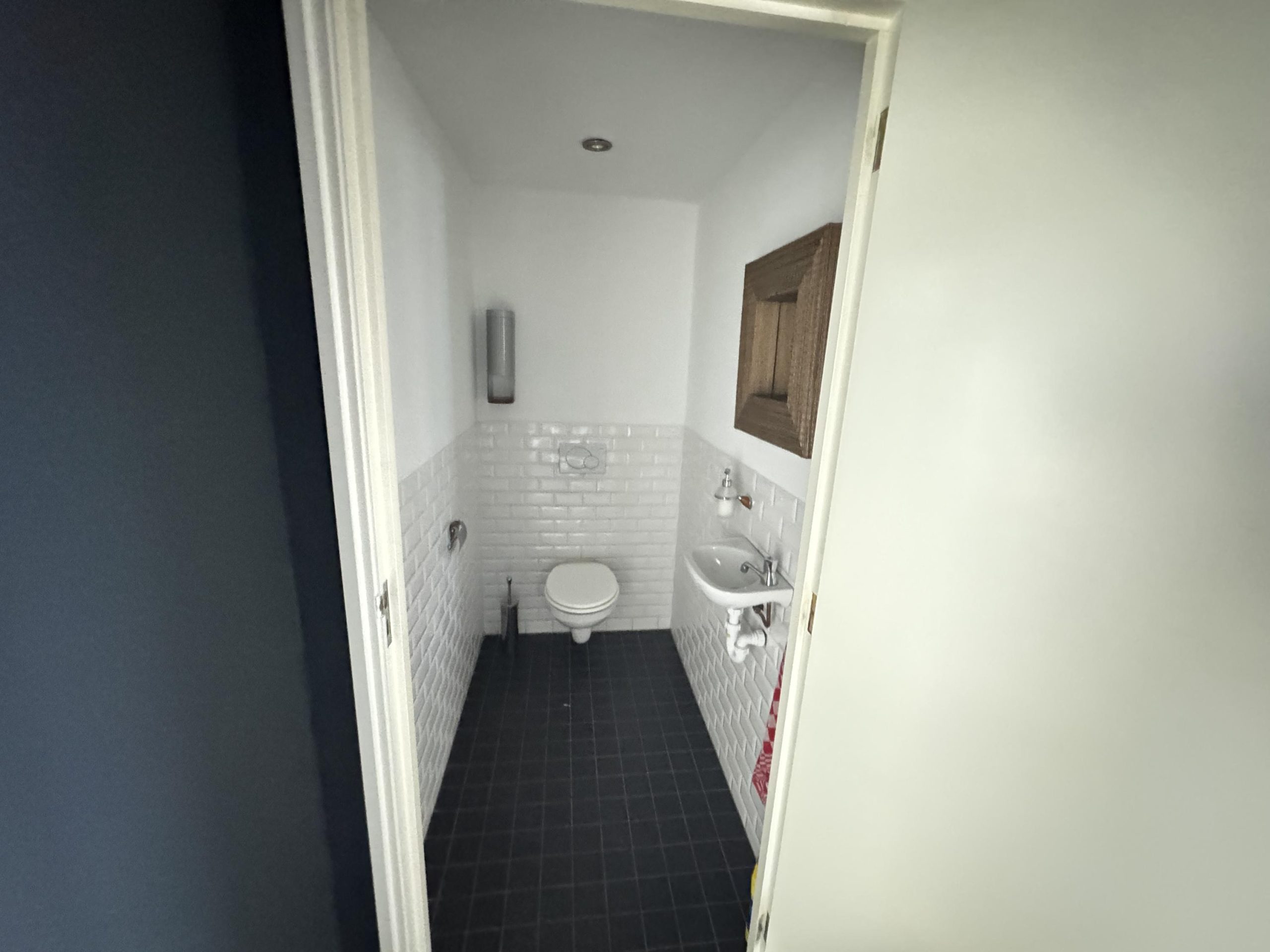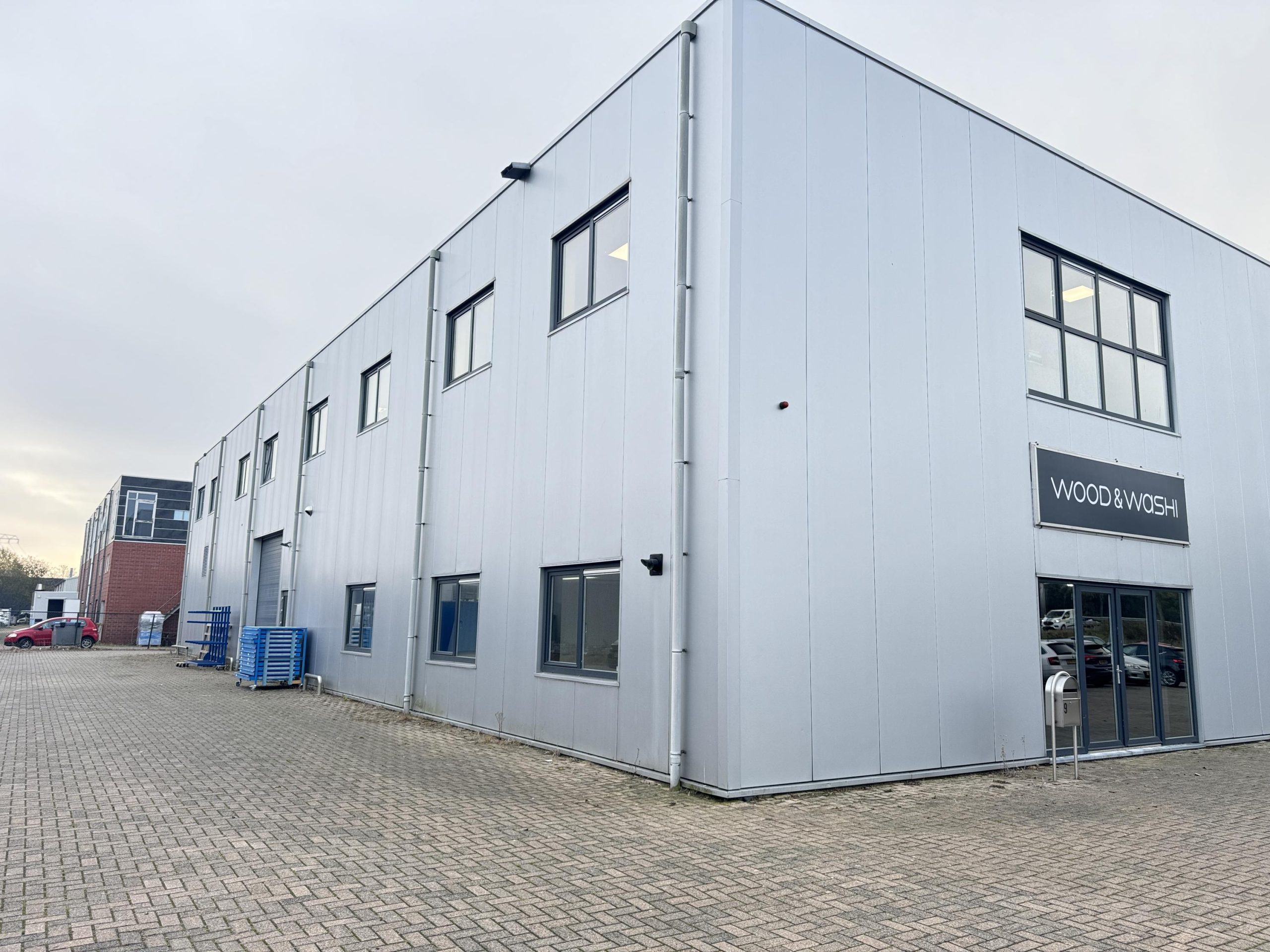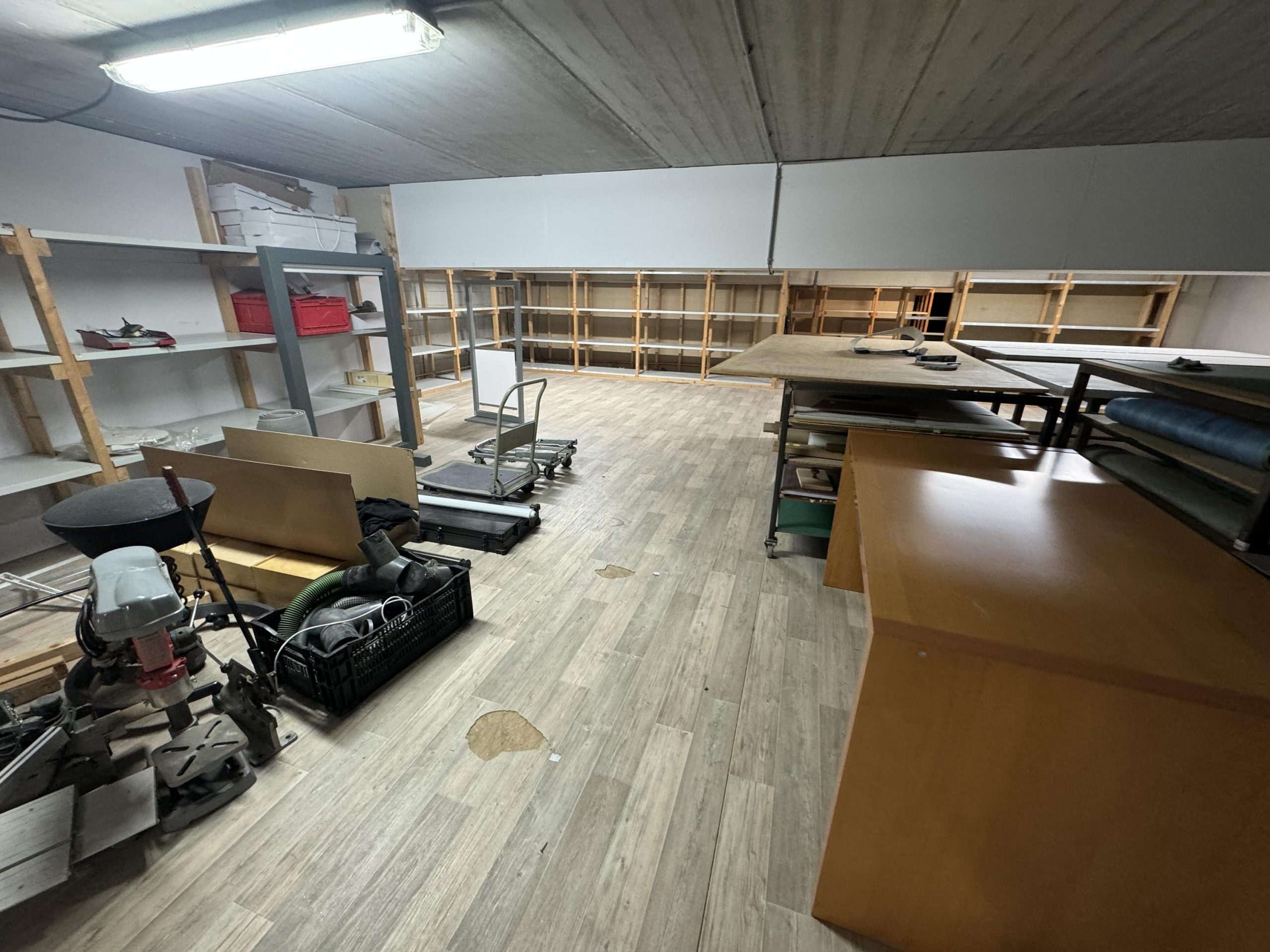 Overheaddeur, krachtstroom, systeemplafond met armaturen, vloerbedekking (gedeeltelijk), Cv-ketel met radiatoren, pantry en toiletten met fontein.
